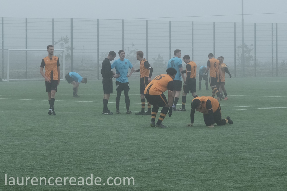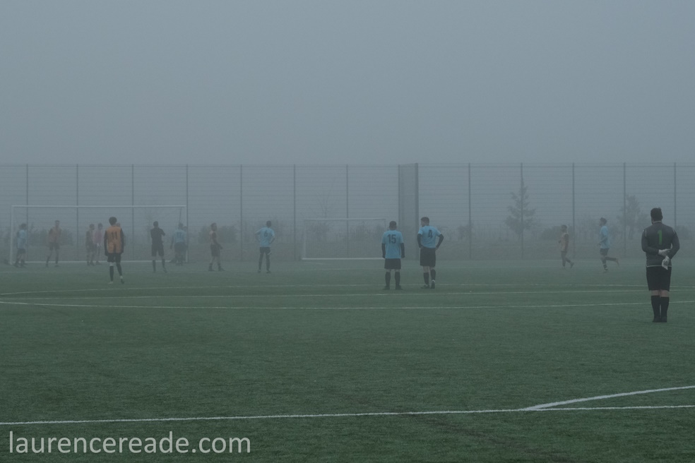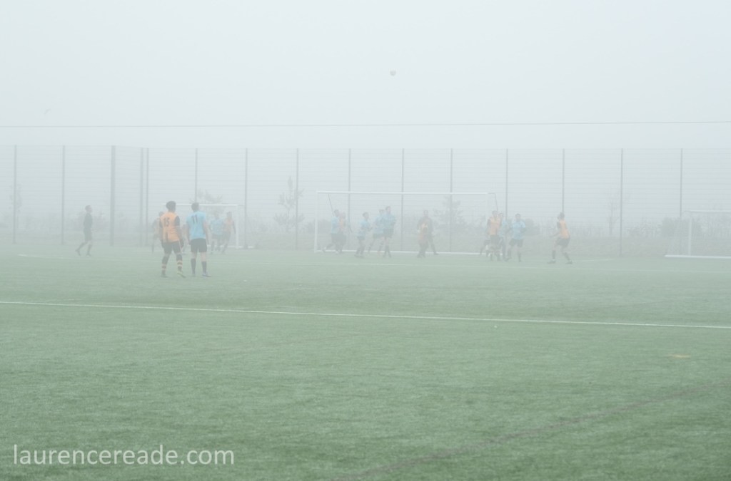 But my immediate thought wasn’t about the standard, after the finding a game on, and getting to it, I really didn’t fancy losing it to the fog, and this part of the world does have history with that sort of thing! Fortunately, both sides and the referee wanted to, and were happy to play, and we saw an entertaining game, with the result rather harsh on the visitors. In fact, the only minor difficulty was that the water bottles on the far side froze!