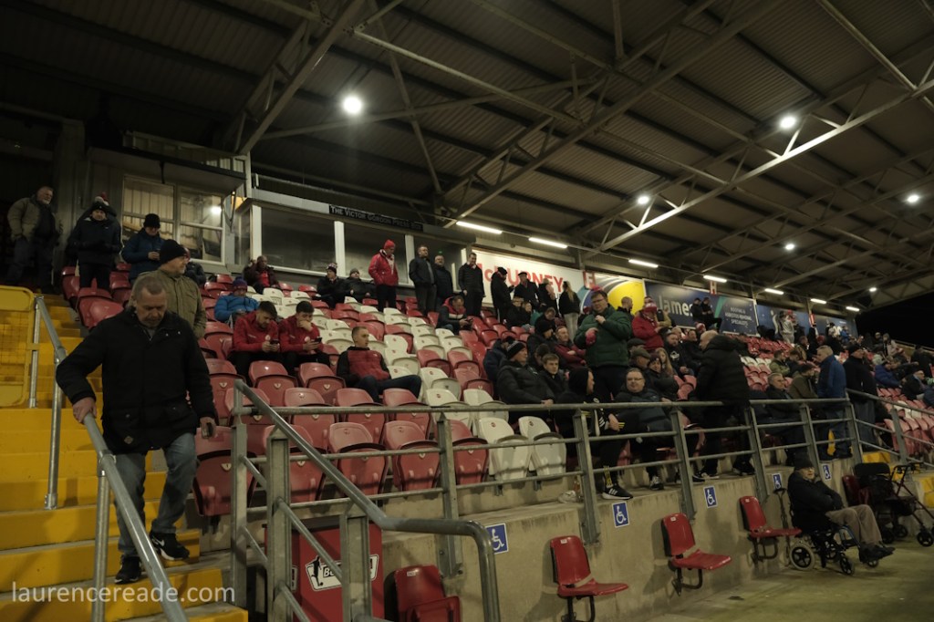 The game proved to be well worth the effort in getting there. I’d expected a straightforward Portadown win, but Dave had warned us against that notion. He was right, although it was very much a case of Ballyclare converting the kind of chances that their hosts were missing. What changed everything was the penalty expertly dispatched by Ryan Mayse, and the loss of Ballyclare goalkeeper Gerard Walker to injury. He was replaced by the youthful Robbie Mather, and as the visiting defence sat back to defend him it gave Portadown enough space to feed Mayse, who fired home for an oh-so late equaliser.