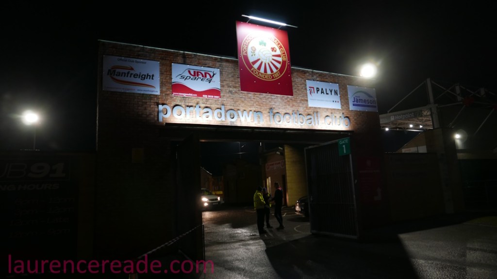 As someone in their early 50’s trips to Northern Ireland are still something of a novelty to me; I’m very aware that I’m miles behind in groundhopping terms from where I am on the mainland. The Troubles are of course the reason for this. Back in the early 90’s I wouldn’t have dreamt of visiting here, Portadown as an example added up to the annual riot along the Garvaghy Road during Marching Season. We passed along the flyover crossing the road on our way to Shamrock Park, I did glance as we passed; thank heaven things are gradually being worked through. The people on both sides deserve nothing less.