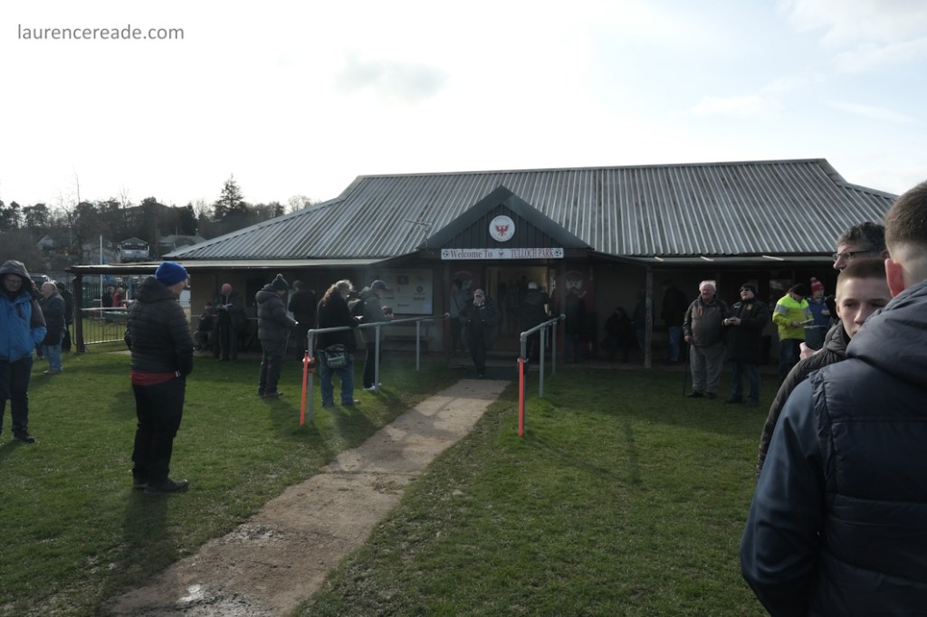 And if you’re thinking that these are simple enough requests, you’d be correct, but then think how many times you’ve seen Chris, Craig or I have to chase them up? When the news came through that a club official had given a couple of our more enthusiastic beer drinkers a lift to a pub into as there isn’t a bar at the ground, the view that this was a club that had clearly thought long and hard about how they were going to host and did it beautifully. And for the record, while Tulloch Park isn’t in my top 10 grounds visited by a long shot, that doesn’t mean I didn’t like the place. It’s a place of backdrops, be it trees, the houses forming geometric shapes in grey, or even the factory to one side.