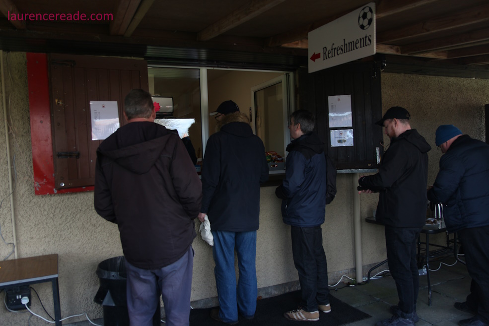 We parked up, and within seconds the pieces began to fall into place. Yes, Kinnoull are struggling, and they were mourning the death of a committee member here, but it was an afternoon I’ll remember with no little fondness. There was a genuine decency about what they did here. I queued up for food, and there was something other than pies on offer- I did enjoy my Stovie. As I sat there pondering when the teamlines were going to be posted, there was an official writing the board out. They also made sure that the loss of a Penicuik committee man during the previous week was included in the tribute before kick-off.