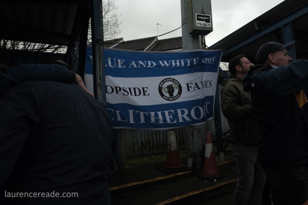 Perhaps the reason was Non League Day, I do like to support it. Here Clitheroe offered season ticket holders at EFL clubs a discount on entry. I’m a groundhopper, the aim is to visit everywhere once so that discount wasn’t aimed at me. I didn’t take advantage, it didn’t seem right but apparently 35 did, mainly from Accrington Stanley; hopefully plenty will come back here. Incidentally the standard groundhopper joke is that Clitheroe ought to merge with Chatteris Town but no groundhopper would find the ground!