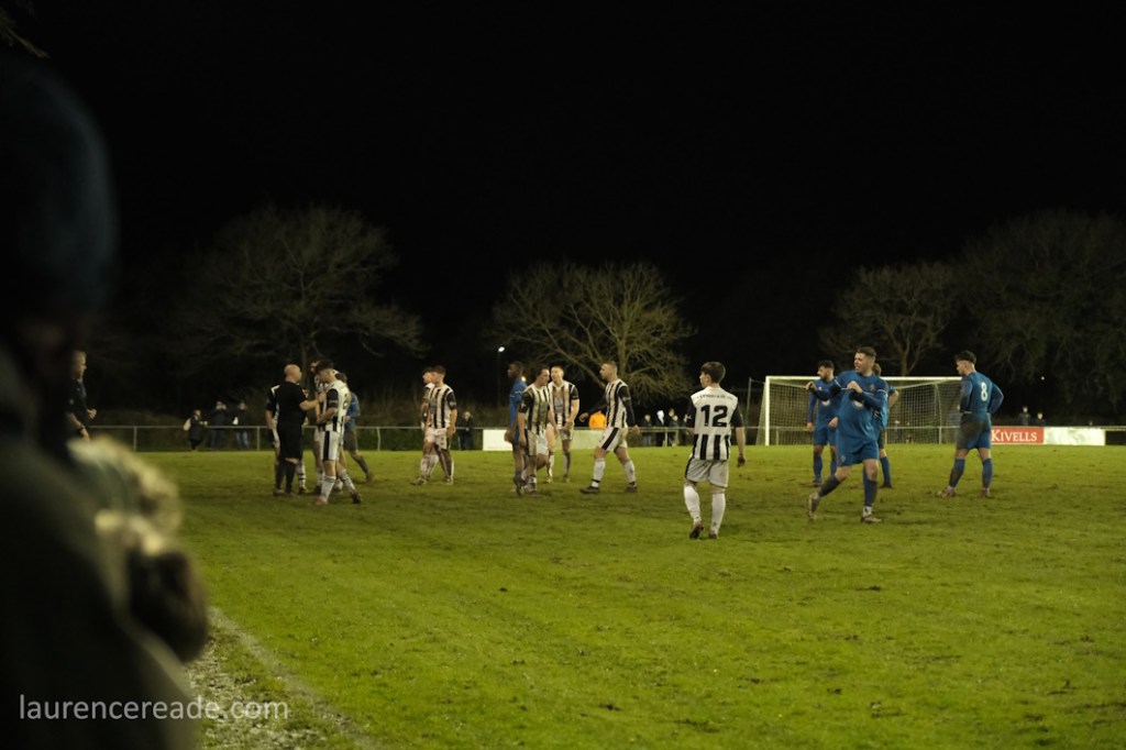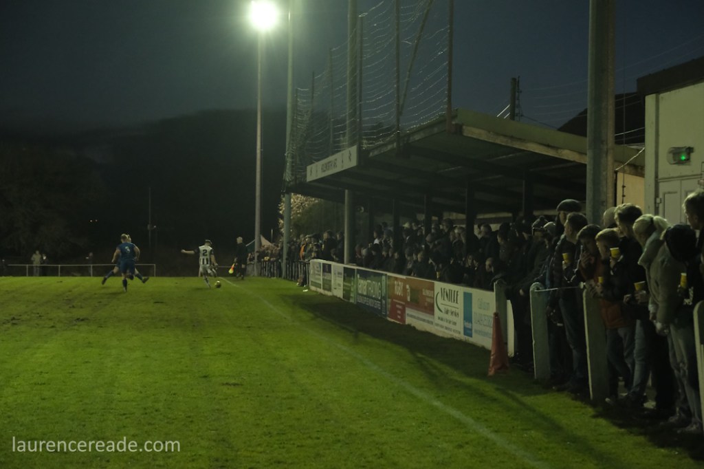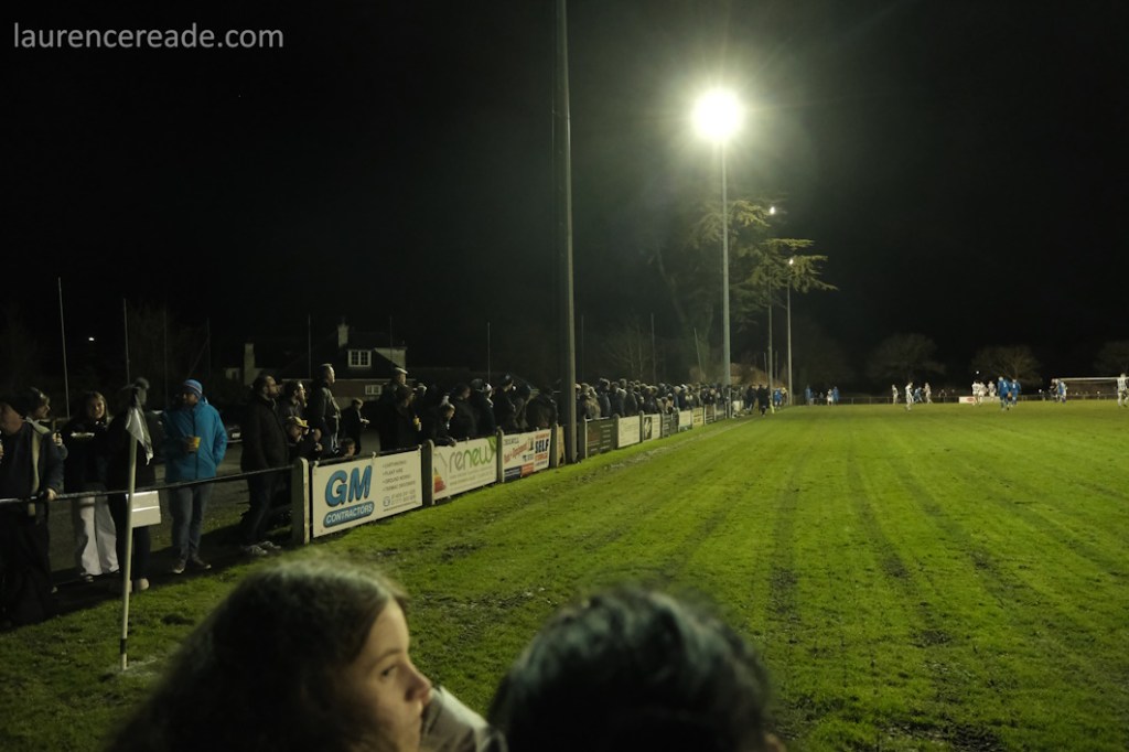 But a crowd of over 900 at Step 6 is exceptional by anyone’s standards and made what was always going to be an interesting game, into an unforgettable evening. Ciders were bought and consumed in bewildering quantities, and that’s coming from someone who is married to a girl from Bristol! It was hard to find a spot to watch the game but once you did, hoppers and local fans mingled and the meeting of two types of football fan was at times extremely amusing. For the record, I have no idea how Phil Hiscox managed to count the crowd!