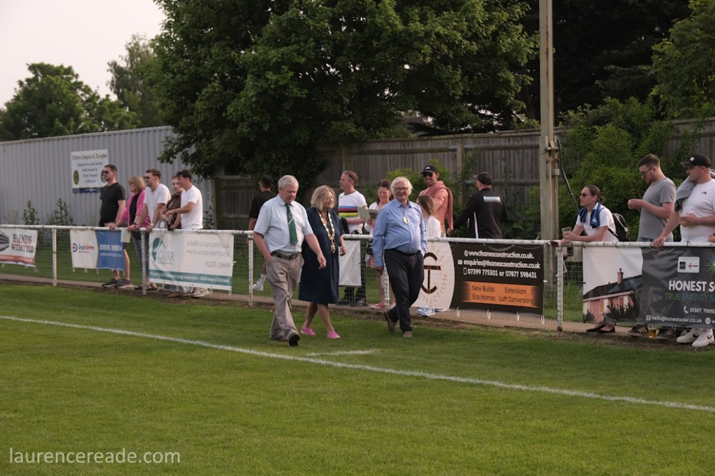 A game of this importance does deserve extra time, but all that produced was tired legs and minds, and I’ve no doubt the two red cards were the result of that. I’ve no idea whether Berinsfield training sessions include penalty kicks, but their 4 perfect spot kicks won them the cup, and I got to advise the Mayor of Abingdon one final time to stand back after presenting the cup!