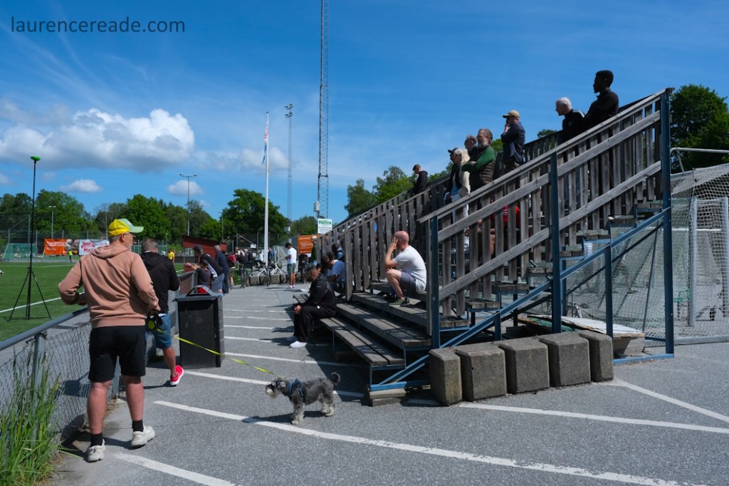 If dear reader you’re new to Swedish football, then Jellystone, sorry Boovallen is as perfect an example as you’ll ever see of the quintessential small town football ground. There’s the ice hall, the pretty as a picture clubhouse, and would you believe a dog agility training course at one corner! The backdrop though is what makes Boovallen what it is with the red painted wooden houses and the area lined with trees. You really couldn’t have imagined a more pleasant place to spend an afternoon.