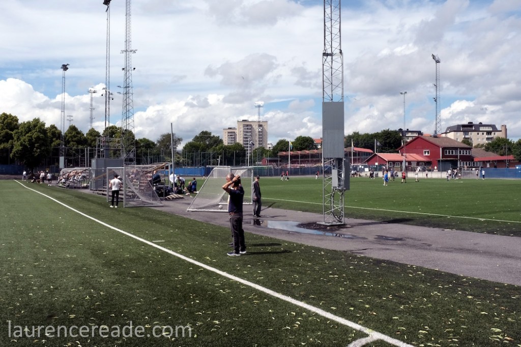 We walked in passing by that Max, and not completely sure which pitch our game was allocated to. As ever with Skytteholms the poster on the clubhouse noticeboard tells all, and that’d I’d got lucky. Skytteholms has 3 full sized pitches, and this was to take place on the one pitch I hadn’t seen a game on. That will always raise even my eyebrow, how ridiculous is it that a bloke from Oxford has completed all the pitches at a suburban football ground in Sweden?