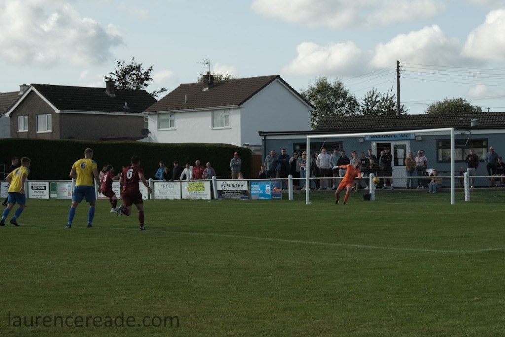 Sadly the game couldn’t live up to the surroundings. Both sides slugged it out impotently with the defences well on top. It needed an error to decide it and sadly for Bromley Heath that happened both in the final minute of stoppage time, and in their box. Jordan Locke stroked home the penalty to win the tie for Broadwell when in truth the goal-less draw would have been a fairer result.