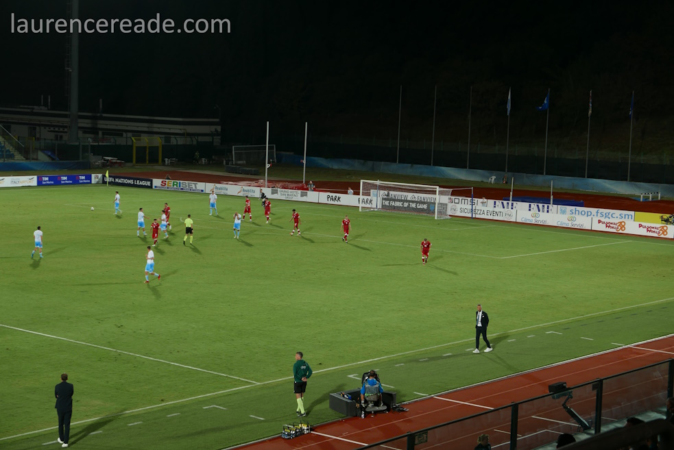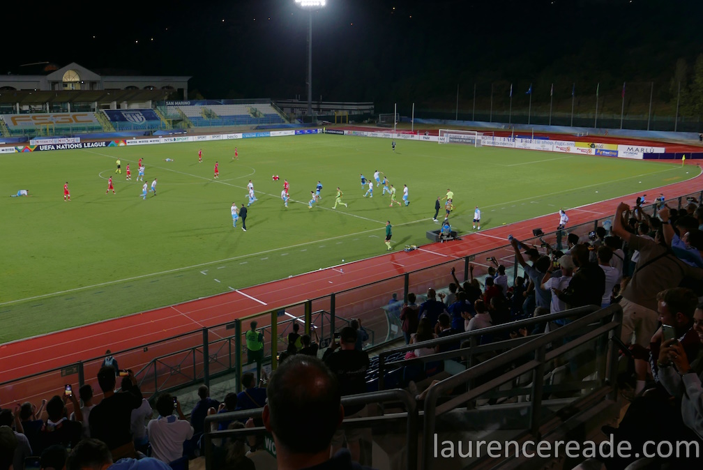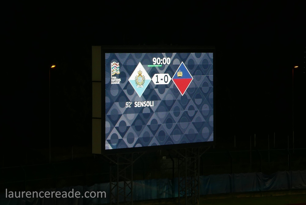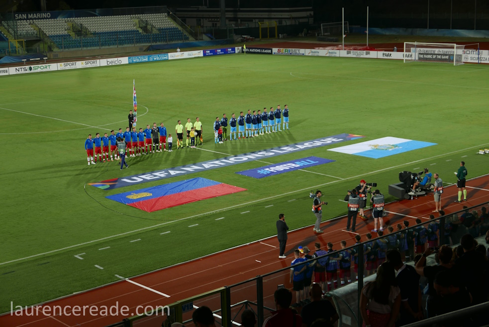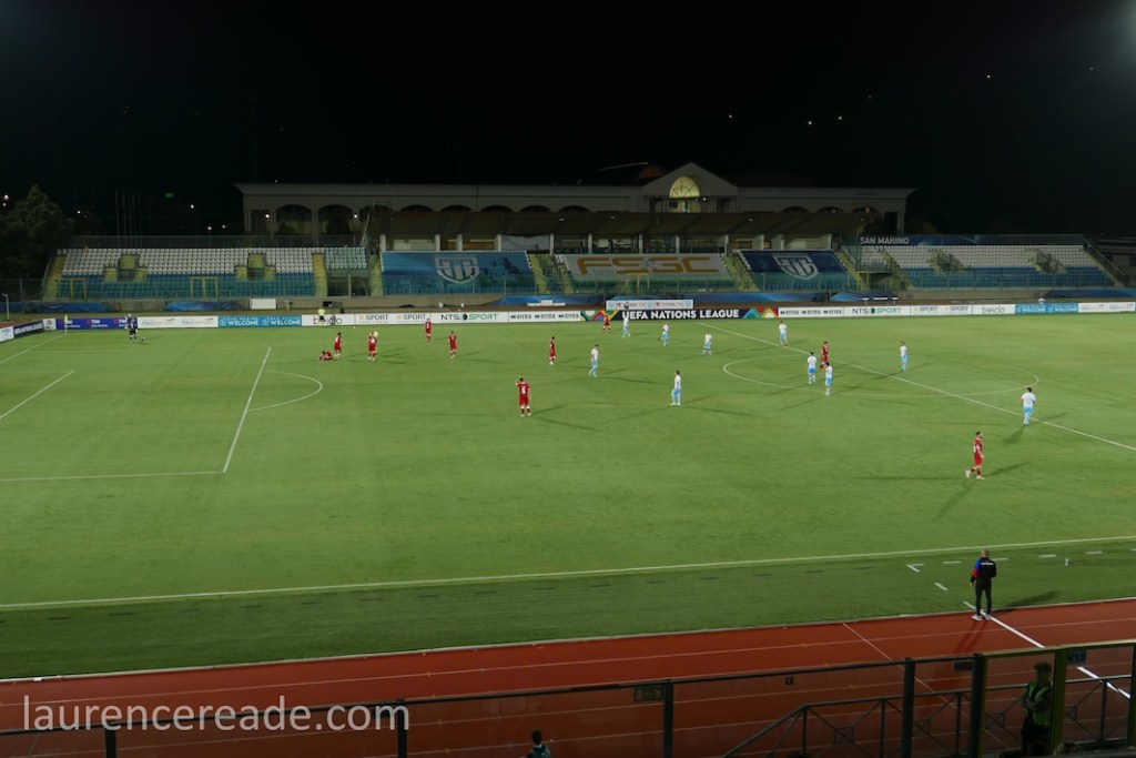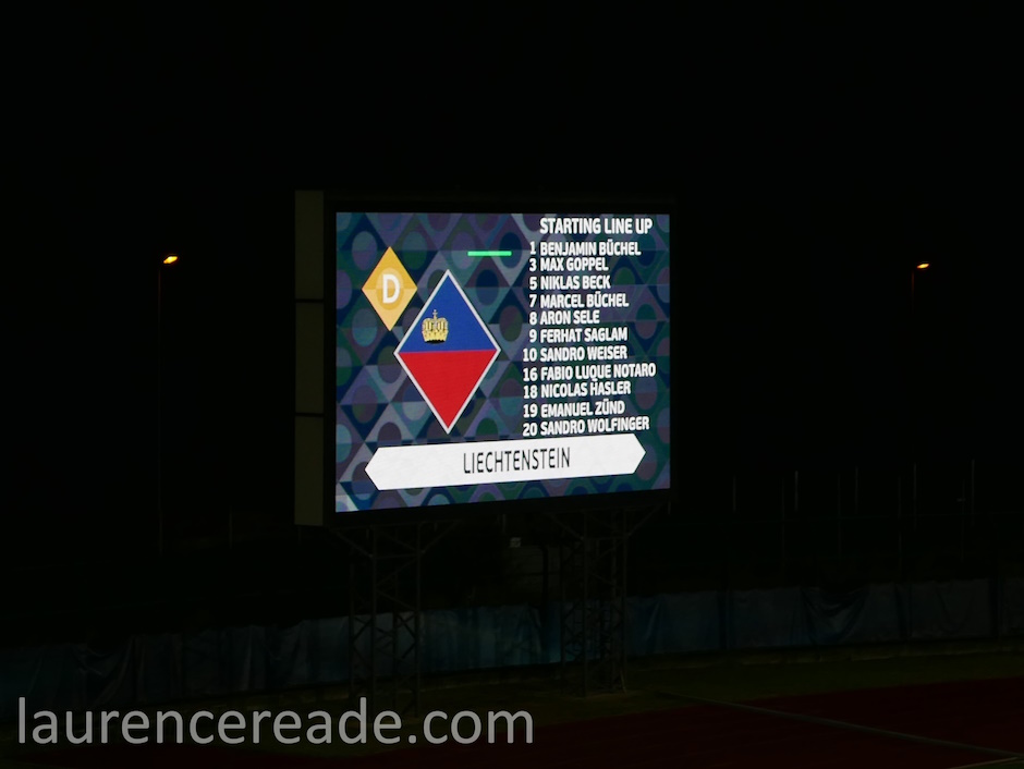 Firstly the format of UEFA’s Nations League is what made this interesting. For European and World Cup qualifying the groups are seeded to keep teams of similar strengths (or weakness) apart. The Nations League’s system of 4 tiers A,B,C, and D with promotion and relegation means San Marino are playing countries of similar strengths. The point was illustrated neatly wher you look at the relative populations of the two countries we’d be watching; San Marino is home to 33,000 with Liechtenstein 35,000.