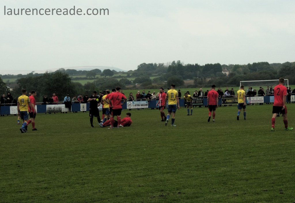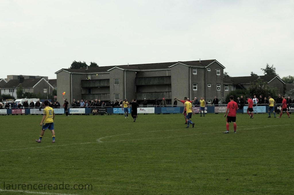 And so there were, and yes 5 red cars were the result. My regular reader may recall I have seen worse, six in a dead rubber game at Caernarfon and more recently a quite horrible 5 dismissals at Whitehawk, the latter the worst game of football I have ever seen. This was more like the Caernarfon game, entertaining in a car crash kind of a way. To sum it up the game may have seen the referee risk R.S.I. issuing 12 cards but both teams chatted happily to each other as they walked back to the clubhouse. You can read plenty into that, I’m sure.