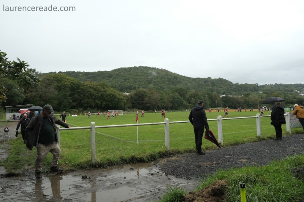 That hints at why AFC Glais moved in; while the ground has obvious limitations it is more than good enough for Glais in the Swansea League and now the West Wales Premier. And boy did Glais make good use of it on a wet morning in September. From the warm welcome at the gate, to the gazebos selling all manner of food, drink, and merchandise this was a well thought out hosting. I did wonder whether they’d taken their cues from visitors Pontarddulais who too were excellent hosts last year.