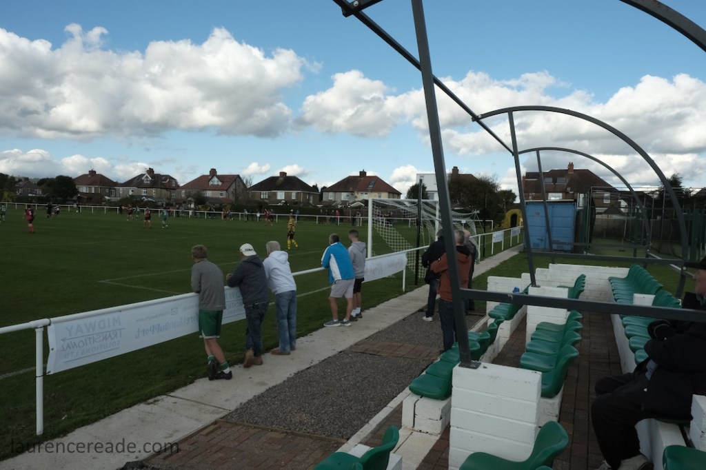 That’s not to say there wasn’t a lot of work that needed to be done before Rogerstone moved in. The pitch needed a lot of work and the whole facility needed widening, just look at how the pitch’s grass changes near the near touchline. Then there was the changing rooms to refit, and a rail to construct. They’ve even built themselves a stand, and as they put it, when you’ve got no money, you have to improvise. Gloriously, wonderfully so it turns out, and I’m sure they’ll find a way to put a roof on it!
