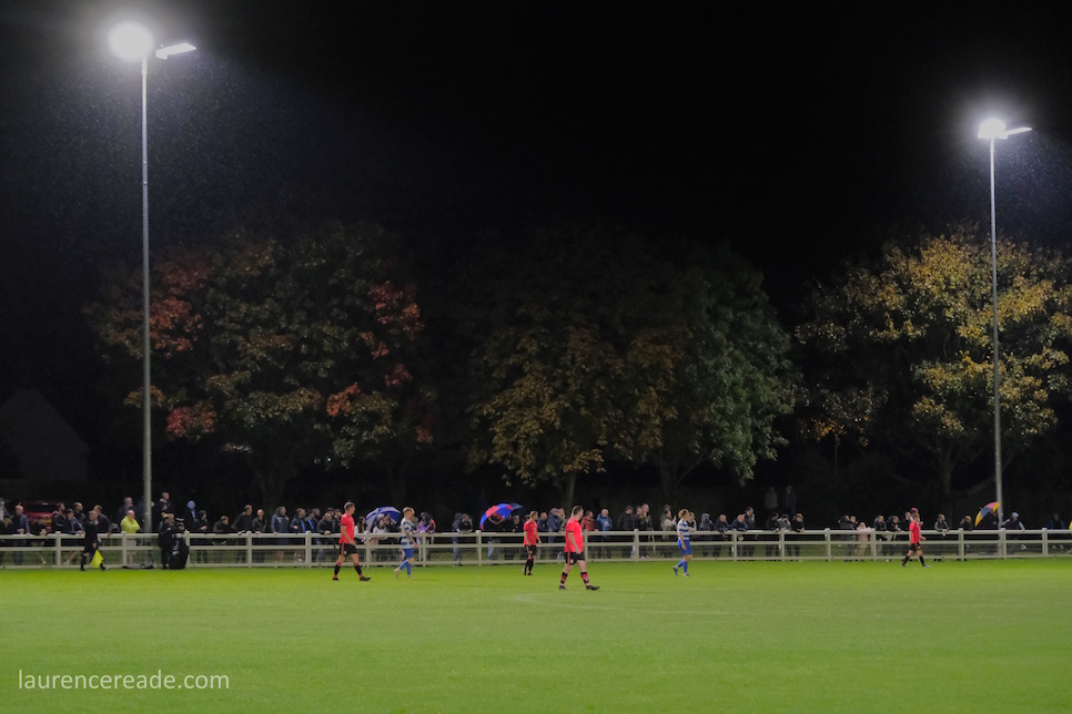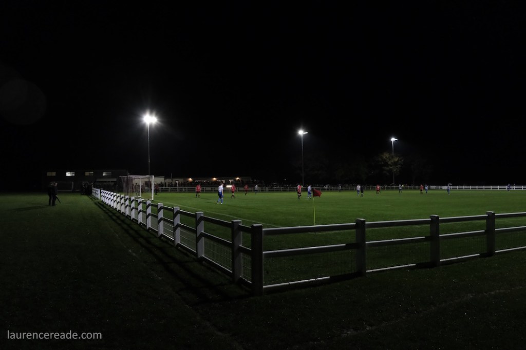 An abiding memory of that hop was that of the 4 grounds we featured that day Faringdon were by far the biggest club, and one best equipped to progress but for one massive issue, their lack of floodlights. The problem was and is that Tucker Park is a public park surrounded by houses, in a well-to-do area. I couldn’t see how they’d ever progress here, and so to see them firstly get the pitch railed off then get floodlights here is a remarkable achievement.