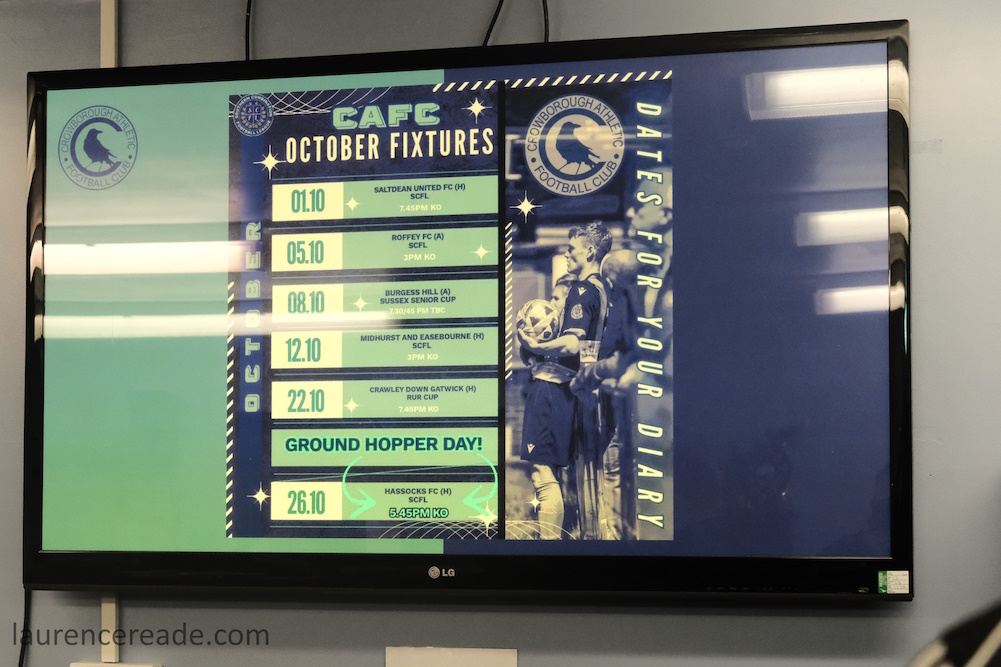 There was a direct comparison to be made between VCD and Crowborough too. Both have had stints in the Isthmian League and have ambitions to return to that level in the near future. As such I knew to expect a crowd around the 400 mark and that would have implications on how the club might sell to that many people.