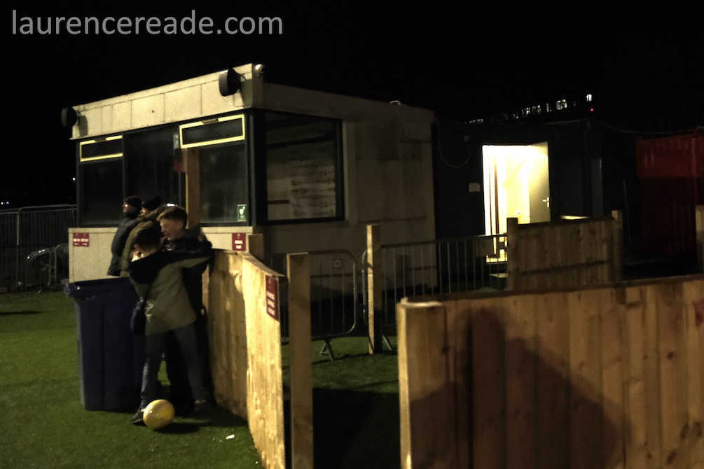 The ground manages to both show the remarkable transformation the club has made to the place while still being very much a work in progress. One side of the ground is out of bounds to spectators while hard standing is put down, and behind the far goal building work continues apace, while the trains whistle past both above and behind you. This is clearly a club with a plan and the means to make it happen.