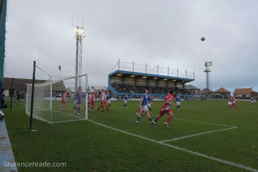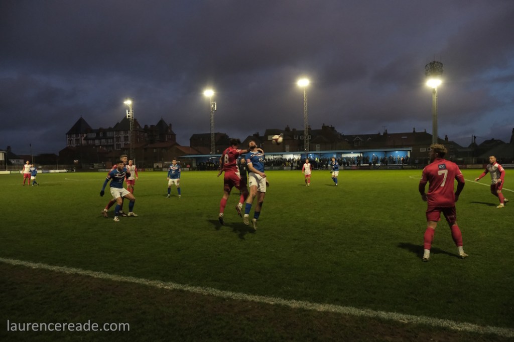 Despite the less than helpful weather it was a good game to watch with the feel of a local derby. The difference in the end was a little more sharpness, particularly in front of goal. Of course the red card really didn’t help Whitby’s cause!