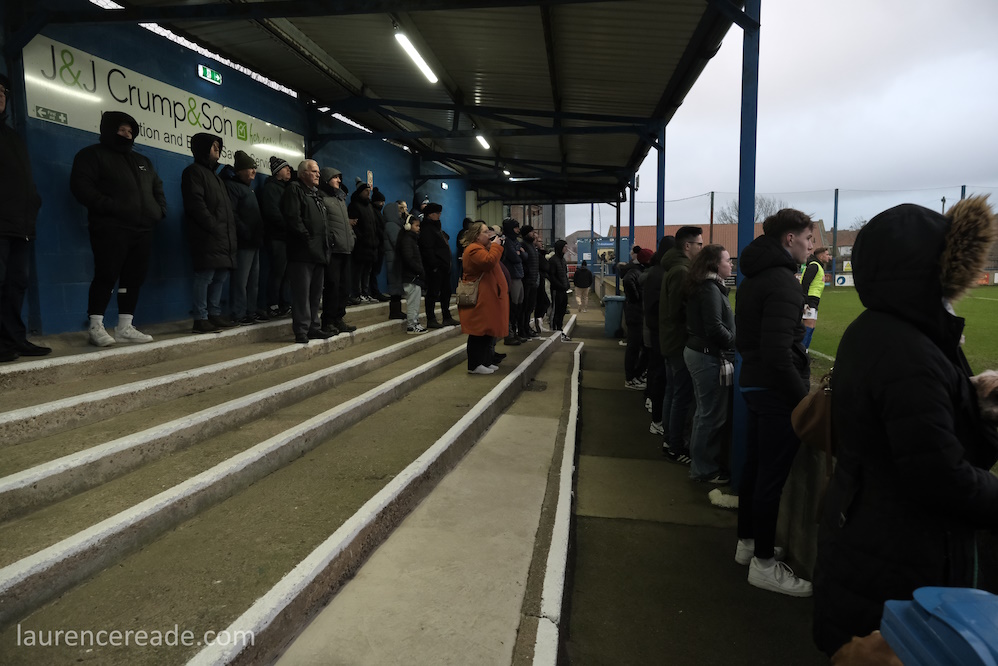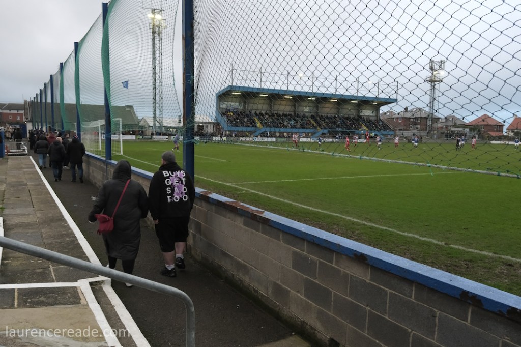 There may have been a shade over half the capacity at our game, but it was busy and one factor was people finding to shelter from the wind! Other than the historic nature of the game, there was the clash of the fishing styles, Whitby with Scampi and Stockton-on-Tees, Mackerel. We even heard songs telling Whitby exactly what they could do with their Scampi!