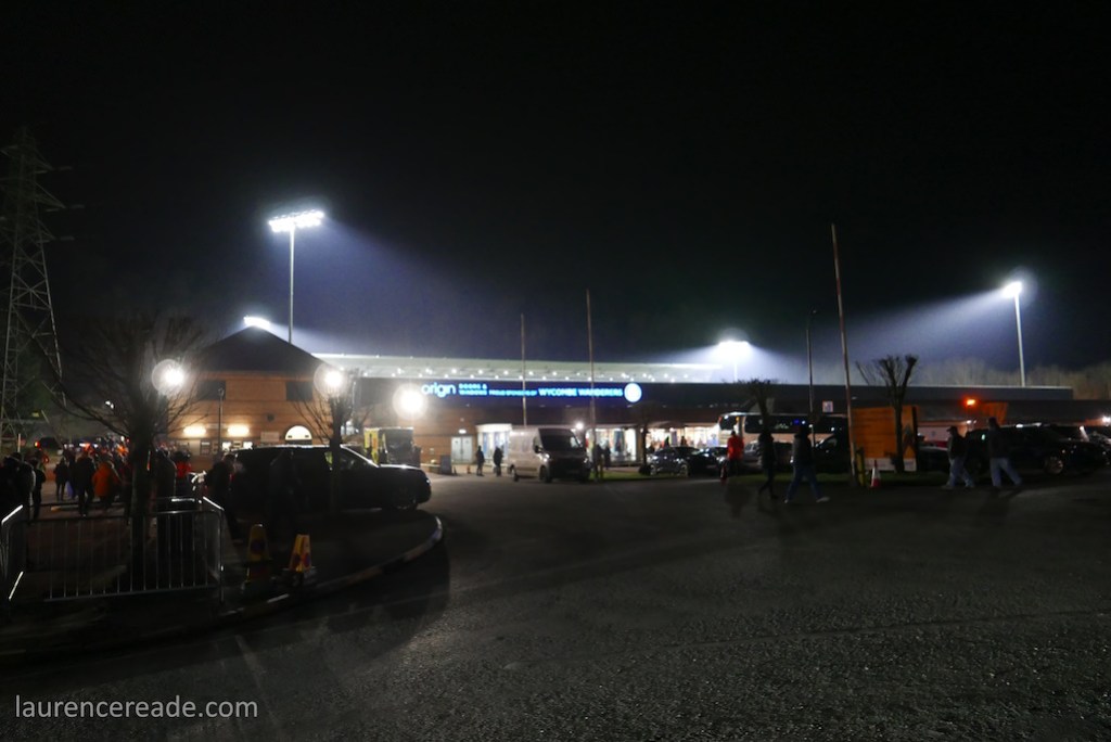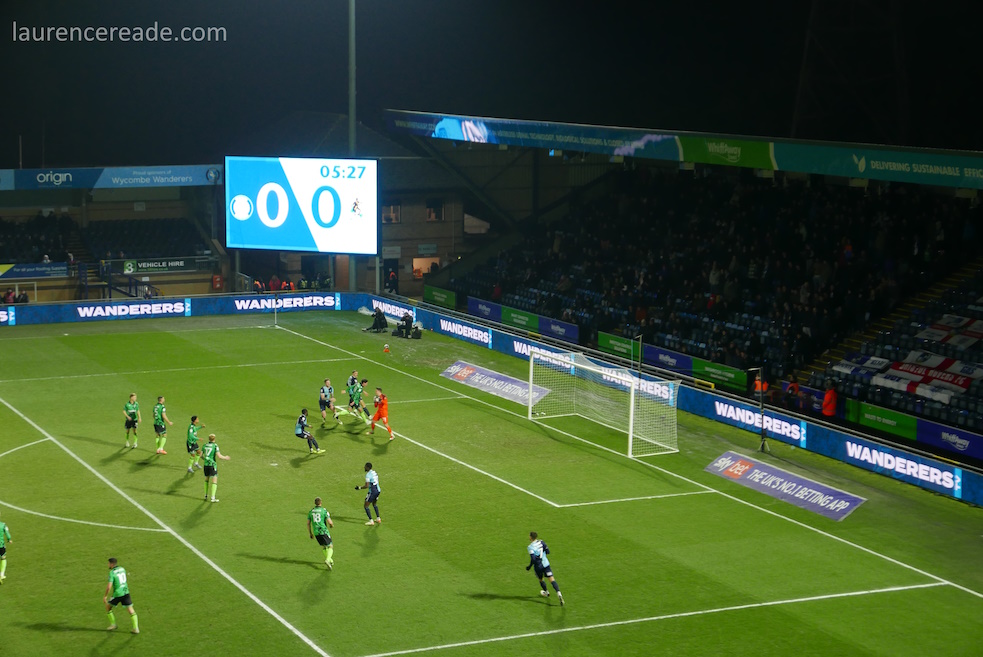 It was easy to sell this game to my wife Robyn, a Bristol City fan as Wycombe were second in the table with visitors Bristol Rovers struggling against relegation, and we all know how much Bristol City hate Bristol Rovers and vice versa! Sadly injury meant hot shot Richard Kone was missing, we’d seen him play and be sent off for Athletic Newham back in 2020. But Wycombe won this one straightforwardly enough, they had far too much clever movement in midfield for Rovers, and Shaq Ford’s challenge leading to his red card was dreadful.