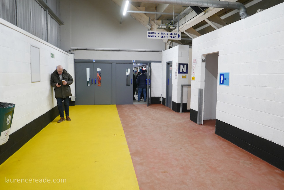 Given when they moved in the club was 3 seasons prior to EFL membership look at the stand opposite the double-deck stand and the home terracing behind the far goal. Those stands are original features with the stands opposite originally their facsimiles. If you’ve ever been to Chester City’s Deva Stadium, you’ll know what I mean. That opened the year before Adams Park and to a very similar design. The ground held 6,000 the minimum necessary for EFL membership at the time. Those two remaining unaltered stands are classic examples of “Atcost” stands; please don’t confuse Atcosts with the little metal “Arena” stands seen in so many newer non-league grounds.