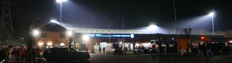 It was easy to sell this game to my wife Robyn, a Bristol City fan as Wycombe were second in the table with visitors Bristol Rovers struggling against relegation, and we all know how much Bristol City hate Bristol Rovers and vice versa! Sadly injury meant hot shot Richard Kone was missing, we’d seen him play and be sent off for Athletic Newham back in 2020. But Wycombe won this one straightforwardly enough, they had far too much clever movement in midfield for Rovers, and Shaq Ford’s challenge leading to his red card was dreadful.