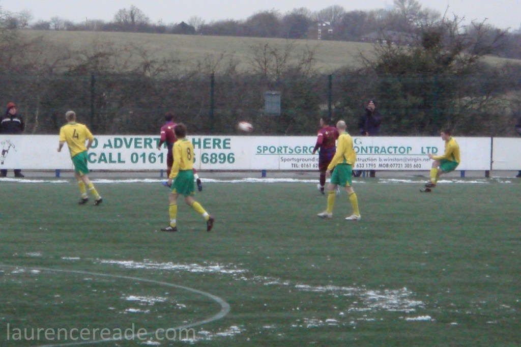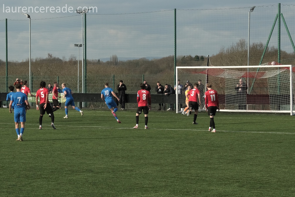 The game was decided on the dismissal of Stockport’s Josh Schofield for a clear denial goalscoring opportunity. He clearly didn’t think it was, his opinion wasn’t what counted, and I’m bound to say his team mate Paul Turnbull switched from outfield to in goal outfield admirably. But his team were unable to consistantly get a foothold in the game, so Cheadle‘s early goal was what counted.