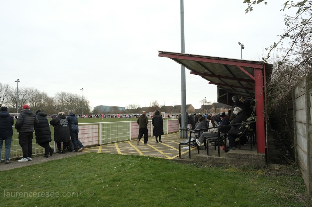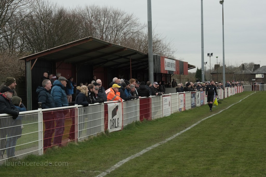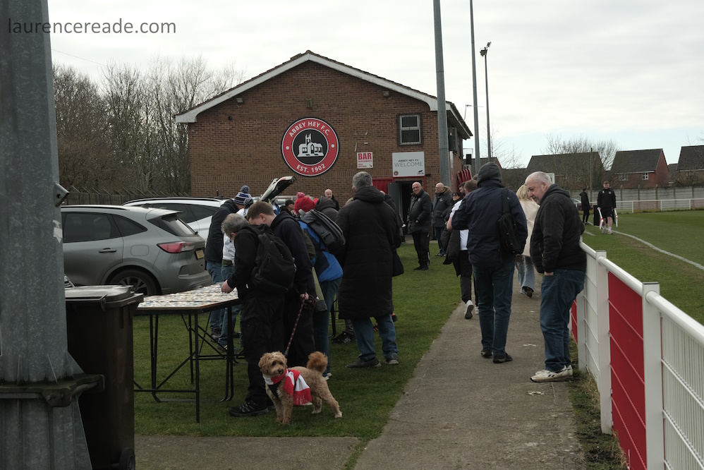 We knew we’d have one problem with a visit to the Abbey Stadium. The ground lies at one end of a cul-de-sac Goredale Avenue so the potential for parking and traffic problems would be similar to that when we visited Cheadle Town. The solution in the short term was to get there early and the club were notably proactive at getting people parked within the ground rather than risk choking the access road. It set the tone for an excellent hosting.
