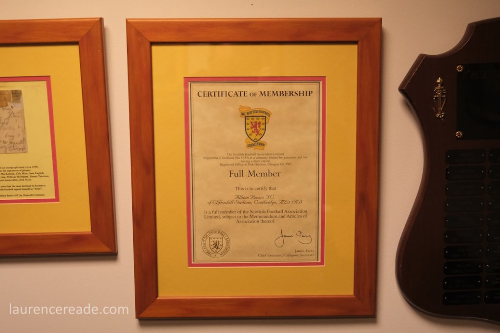 Meanwhile having GroundhopUK come to town, at least added up to a bumper crowd, and they hosted extremely well. We were privileged and humbled in equal measure to be invited into the boardroom at half time, to learn all about how this was the club that had Jock Stein play for them 236 times before being the first manager from the British Isles to win a major European cup, Celtic winning the European Cup in Lisbon in 1967. I must admit Robyn and I completely forgot that we’d actually been to the site of Stein’s triumph, Estádio Nacional!