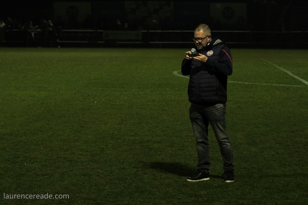 There was more to the game than simply the Essex Senior League’s offering for Non League, it was the official switch on of Takeley’s new LED floodlights, and the whole day had been a fundraiser for Prostate Cancer UK. Some of the player’s squad numbers had been altered to be “45,” s reference to the shocking fact that on average, a man dies of the disease every 45 minutes. Know the symptoms gents, and don’t be afraid of seeking medical help!