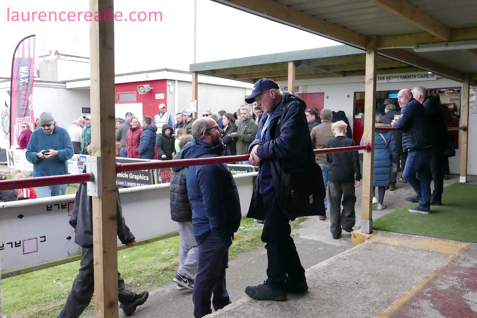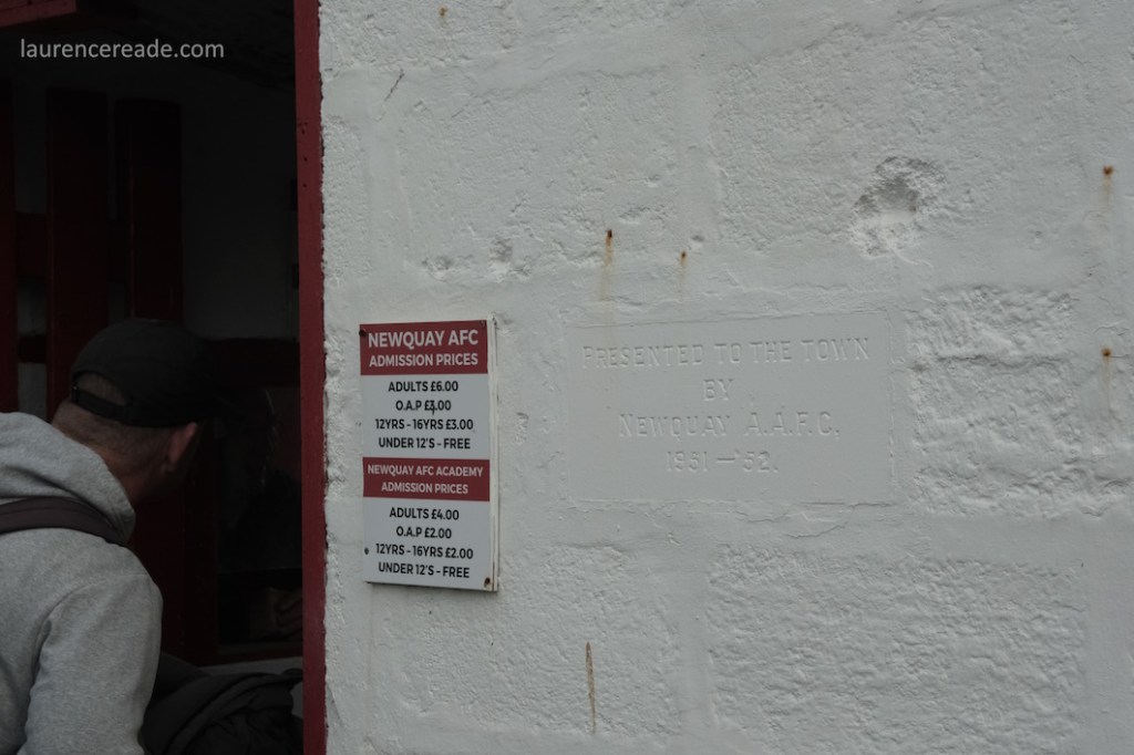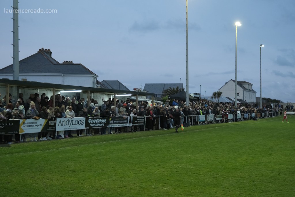 Robyn and I arrived at Mount Wise just over an hour before kick-off and already the place was heaving. That was no surprise, the game was of huge significance, with Newquay needing just a point to secure the Premier West title and with it promotion to the Western League Premier Division- for the first time in their history. I did find that slightly surprising, I’d watched Newquay during their South Western League days, and found Mount Wise impressive enough to imagine it hosting a far higher level of football.