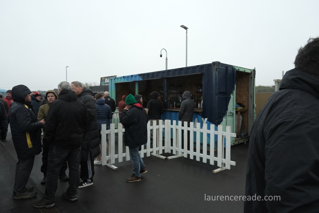 The ground, understandably is a work in progress, and I was very aware that were visiting in the pouring rain and the crowd was likely to be 3 or 4 deep. I got wet, and once I found a clear vantage point, there I stayed. It was obvious that the likelihood of getting food and drink quickly was pretty much nil! In the here and now I found the whole experience less than ideal, but do wonder what the place will be like in a couple of years time? The fact that the ground is next door to a park and ride is mighty handy, although egress after games will need to be better planned.