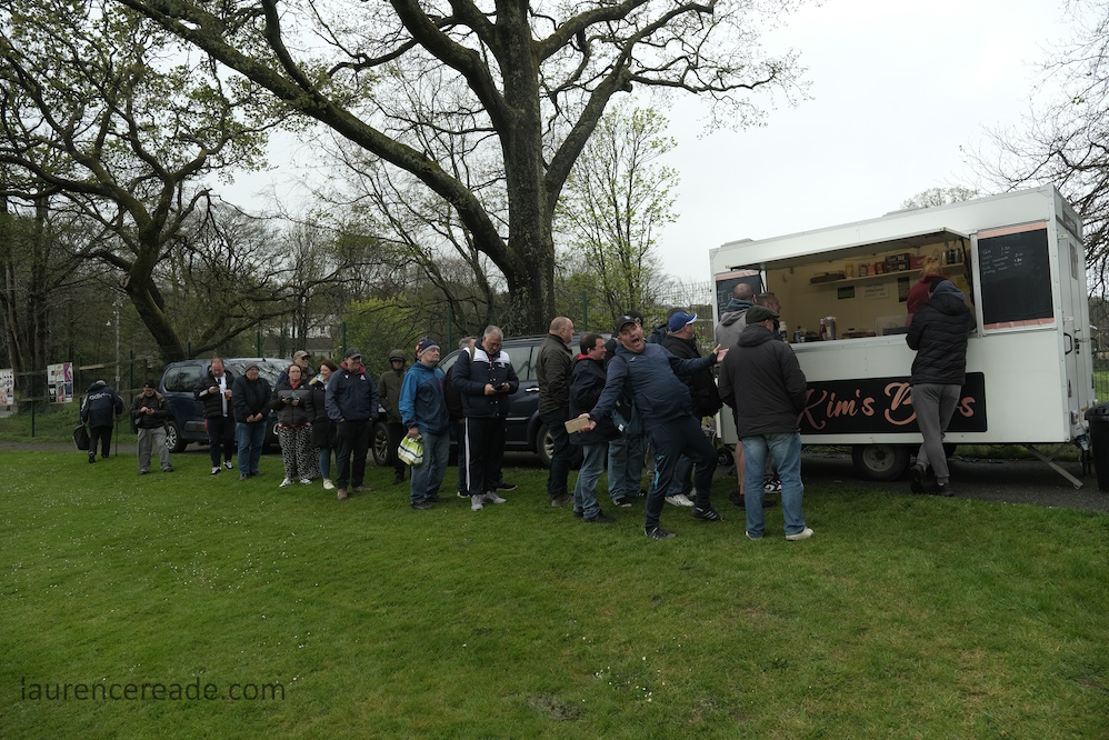 I arrived at Priory Park, to a queue of groundhoppers trying to make sense of the Pay & Display machine. Gone are the days when you simply insert a combination of coins you never seem to have, now you phone an automated number that doesn’t seem to understand English, or manipulate an App you don’t have, and there’s not enough 5G to download it. Here by coincidence my one parking App was the one in use here…. the adage of the chimp and the typewriter comes to mind.