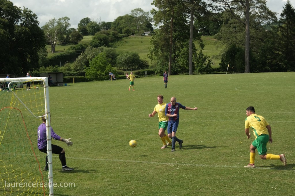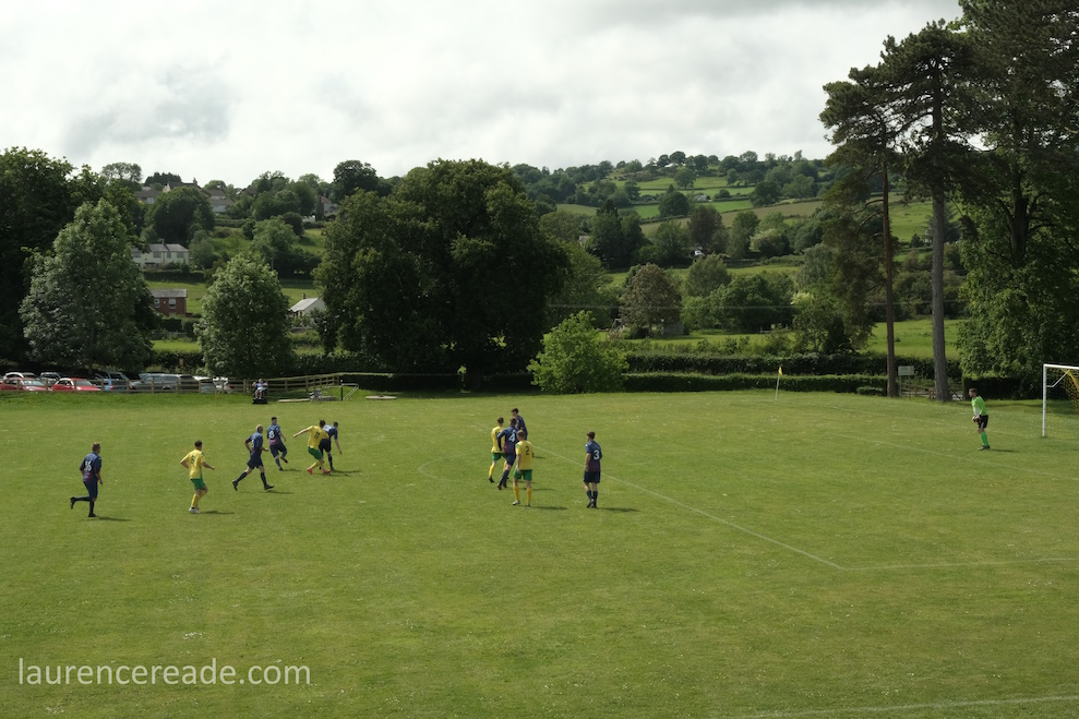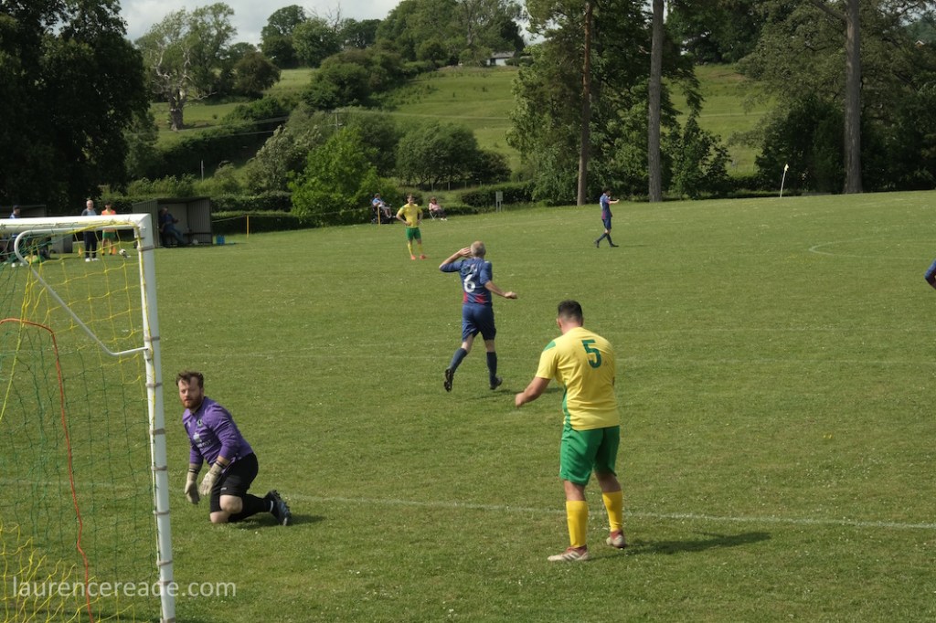 I chose to concern myself with what was important, and that was trying the excellent tea bar, catching up with friends, and enjoying a game at one of the prettiest grounds you’ll ever see. All credit to Llangedwyn, who are Welsh- by 2 miles- for fulfilling the fixture they turned up with just the 11 players. The 11 fought manfully to lose by the odd goal in a game that in terms of titles and status didn’t matter but still managed to be entertaining!