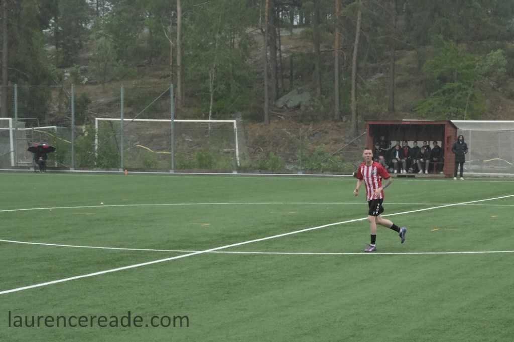 Those who did were well-rewarded, with an excellent game featuring former Icelandic international Birkir Már Sævarsson playing for the hosts. Now 40 and converted to centre half he’s best known for playing full back for Iceland 103 times including their famous 2016 European Championships win against England- he marked Raheem Sterling out of the game. He spent this game comfortably sat in a pocket of unconcious competance, and when Keman Nisic opened the scoring for Nacka there was little doubt that the hosts would go on to win the game.