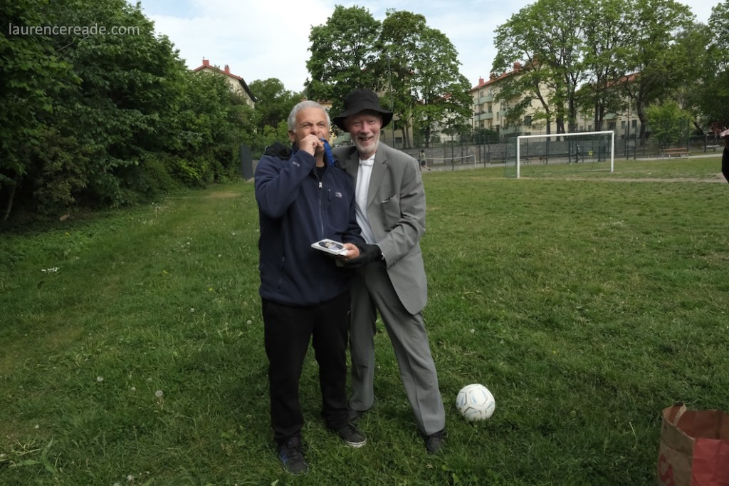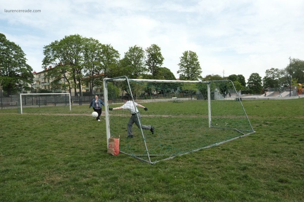 Kim Hedwall’s first destination of the day was a visit to Tranebergs BP home of Djurgårdens IF’s mens’ team from 1911-1936 ; it also hosted 3 Olympic football matches in June and July 1912. There’s not much left now, but we did make use of it for the traditional Swedish Hop penalty shootout- congratulations to Giovanni on a famous victory.