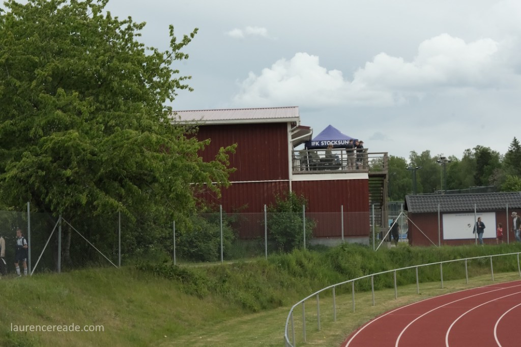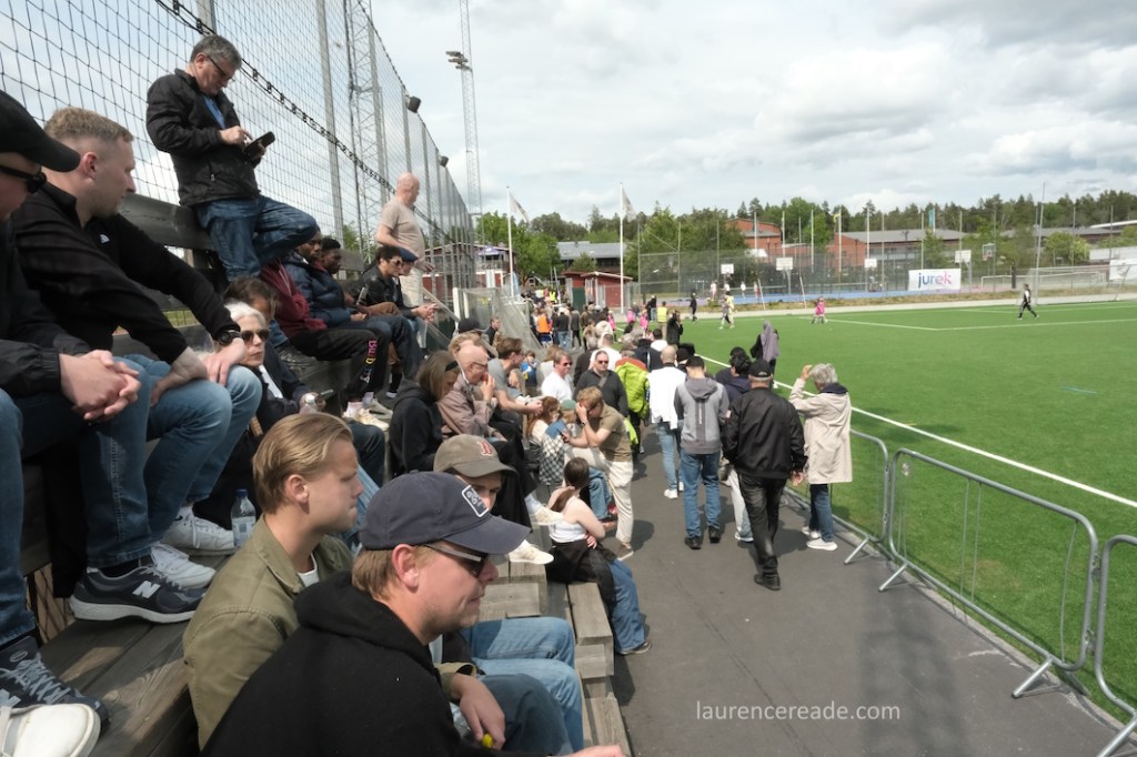 The club are also unusual in that they have two home grounds to choose from and they are adjacent to each other. There’s the Danderyds Gymnasium IP, a grass pitch with a running track and bleachers but this and most games are played on the 3G Danderyds Arena next door. It is basic with just a set off wooden steps to sit on, but it does Stockstund…. for now.