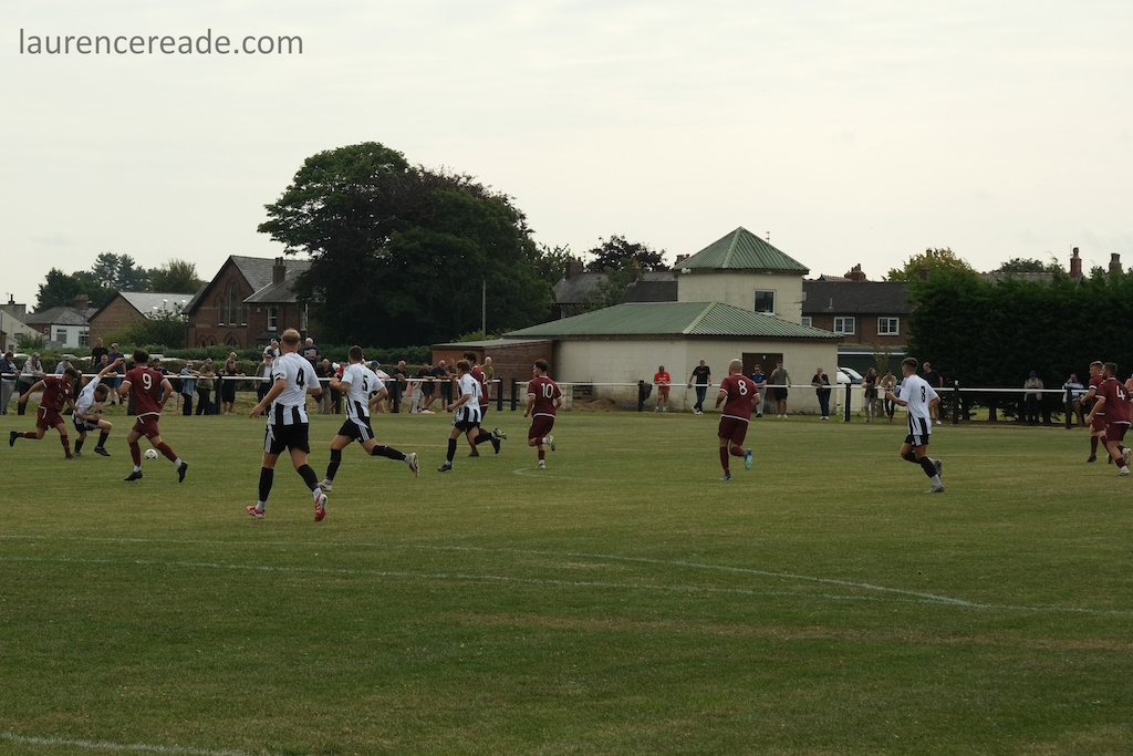 We left the hotel in Blackpool and did a double-take- had some really tethered a horse on some rough ground by the car park? It takes all sorts I suppose, and I was about to watch my 5th, 6th and 7th games of the weekend. We headed to Chorley’s environs (now there’s a ground if you haven’t been!) and reached Croston to find an expertly marshalled parking system already in place.