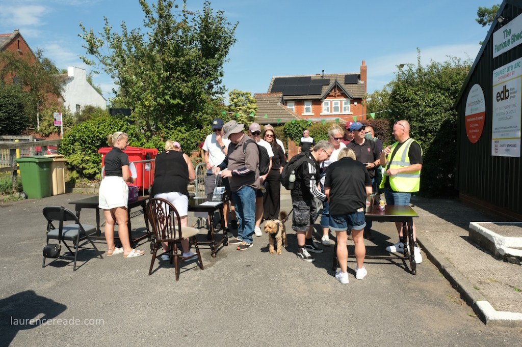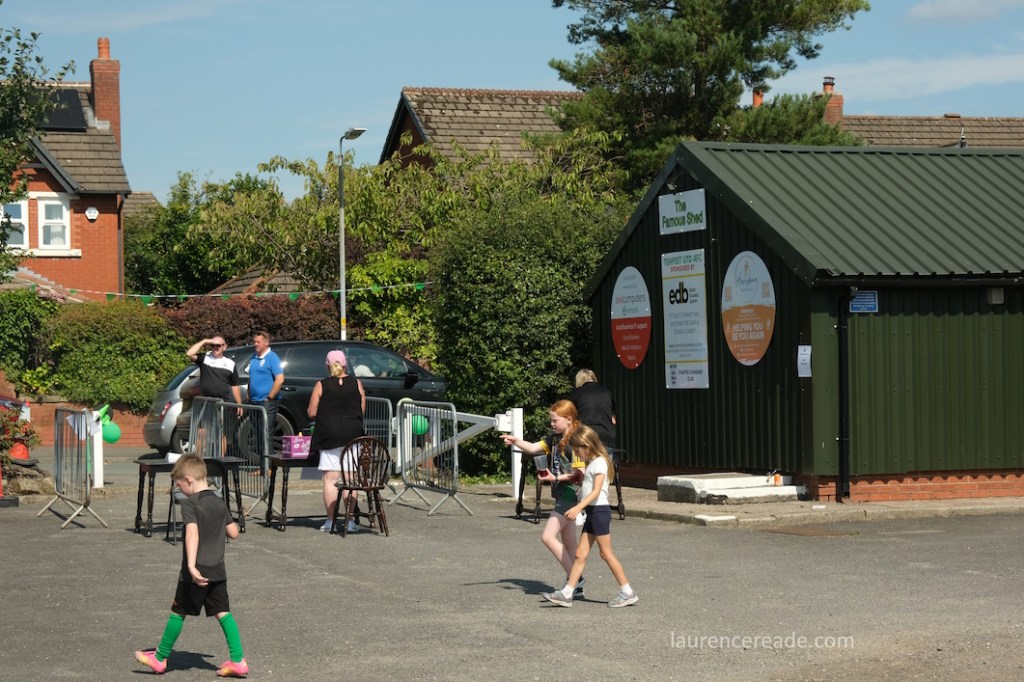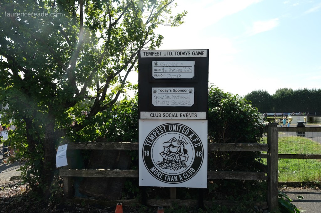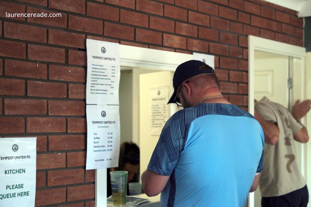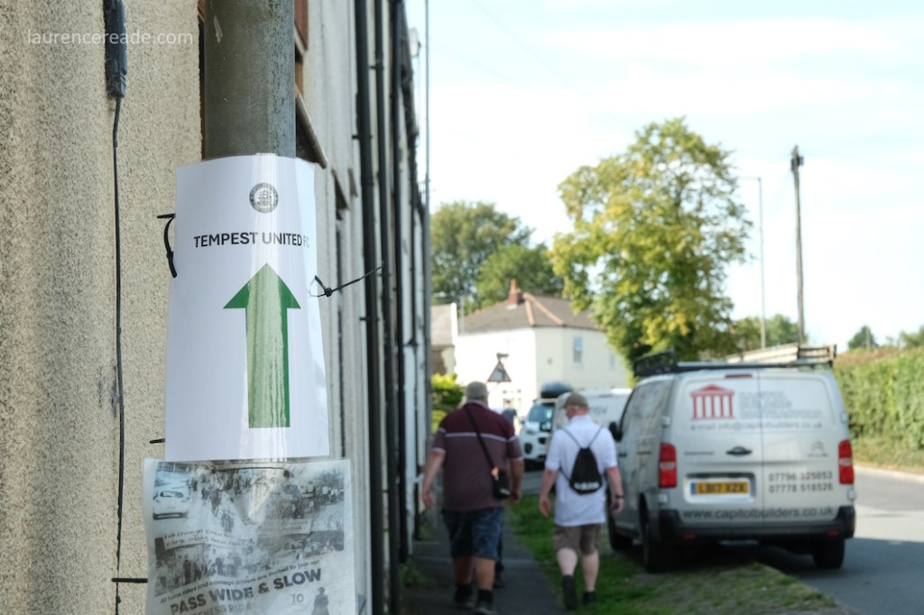 From CMB it was both unusual and gratifying to see so many people walk the quarter-of-a-mile through Lostock to Tempest United. The is named after the road the ground is in but with there being little or no parking at The Famous Shed, it solved what could have been an logistical nightmare. That said we did walk past a pub on the way; it was closed and would undoubtedly done a roaring trade if they’d have known who was walking past. Still, their loss was the football club’s gain…