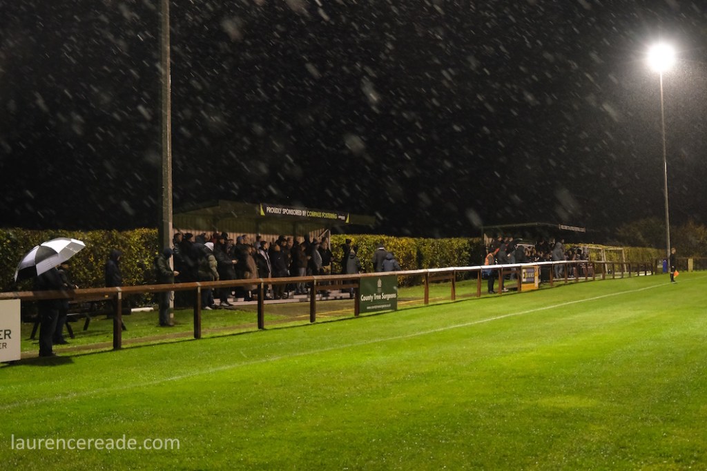 But the sad irony was that in a part of the Weald noted for gunpowder production the heavy rain threatened to turn the opening game of the weekend into the dampest of damp squibs. I’m grateful it didn’t, due to a superbly draining pitch, and while the weather clearly saw a smaller crowd than I’d have liked, at least Alfold made the most of it.