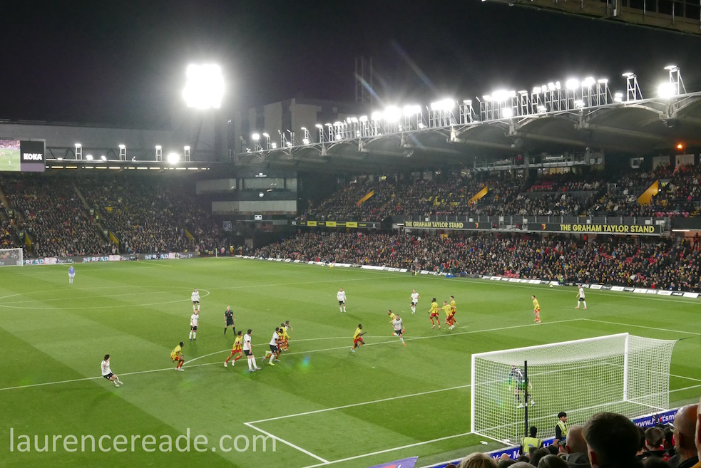 Back then the away end was opposite to now, part of the Vicarage Road experience was to walk along by what’s now the Elton John stand, then through and around the allotments before reaching the turnstiles. There was a fair chance you’d buy your programme, for a while oddly square from then-known groundhopper Wolfie just before encountering the allotmenteers! I remember the floodlights failing once and the PA asking whether there was an electrician in the house? There was, an Oxford fan, he fixed the lights and it seemed that the Hornets were a little ungrateful- they cruised to an easy win.