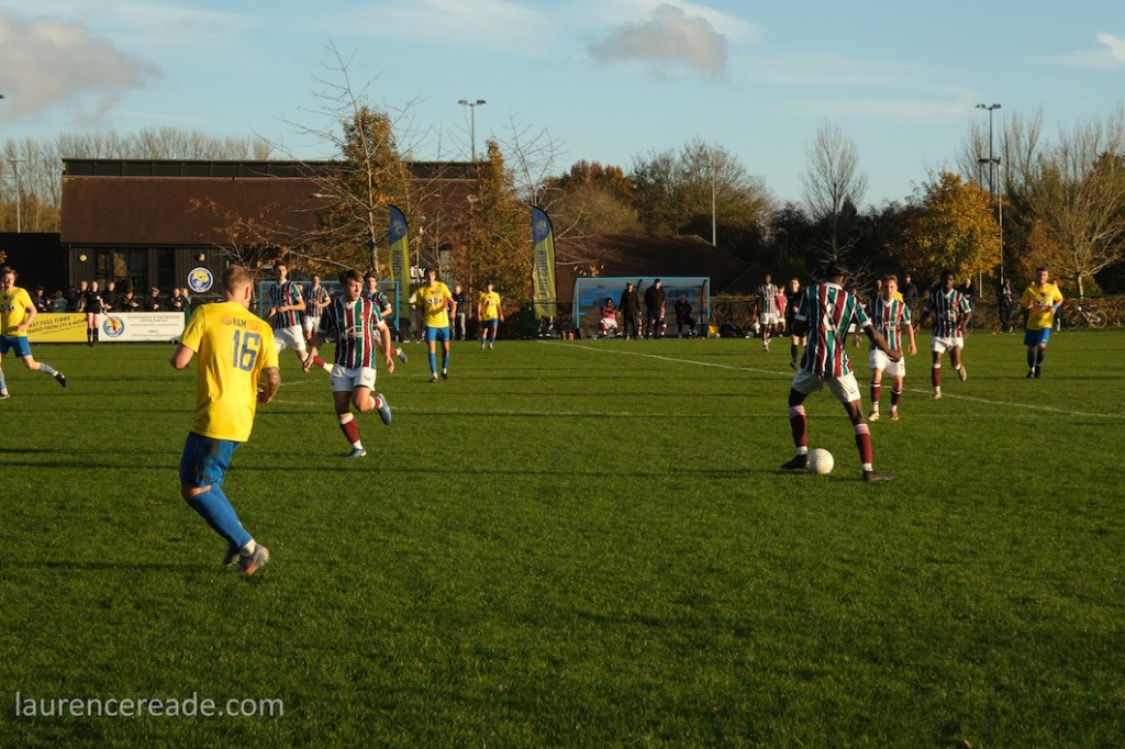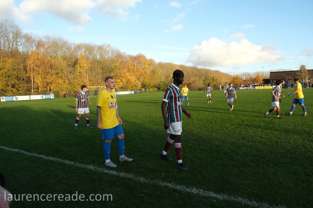 It would be remiss of me to not mention the visitors. It is clearly a frustrating existance being Canterbury City, with the club having achieved promotion to the SCEFL using a series of borrowed grounds while the local authorities back home do little or nothing to help them find a suitable place to build a home fit for a club that made the first round of the FA Cup twice. Since they couldn’t find a groundshare, for this season they’ve had to drop down to the Kent County League, and are at home- but at Thanington Recreation Ground, which isn’t suitable if they were to seek promotion.