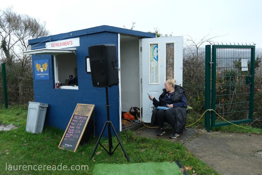 You climb to get to Bush Park, from Newbridge, then to Treowen, then to the club, and a flight of steps to the ground itself. You are rewarded with both a wonderful view at the top, but a wonderful welcome too. In a weekend that saw no end of waterlogged pitches, Ben had been kind enough to let us know his game was definately on, but had also told the gate we were coming- I’m quite happy to sail under folks’ radar, honestly!