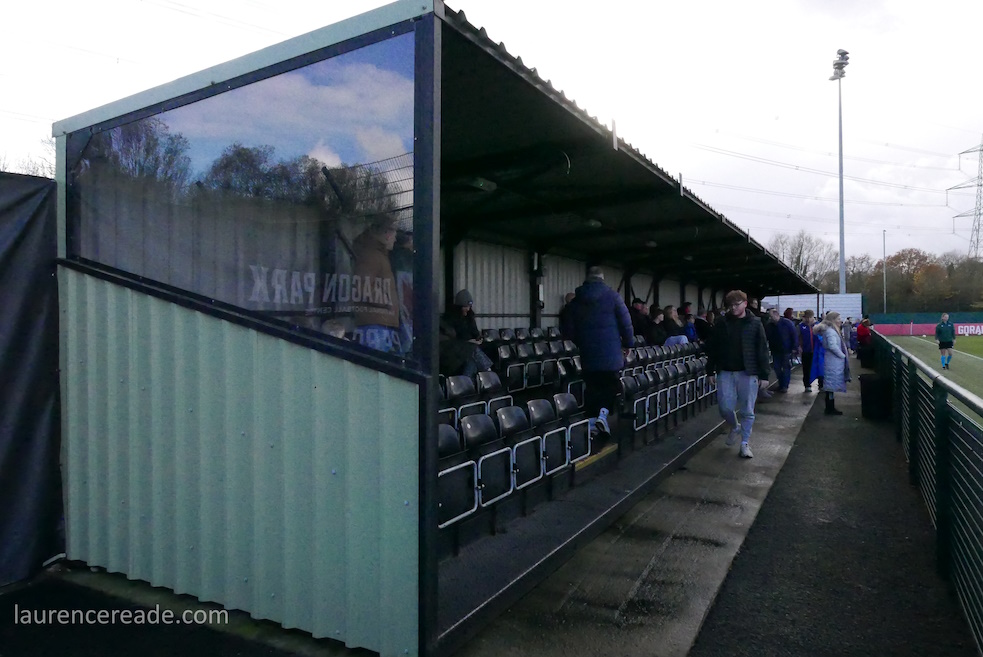 The stadium is an oddity, as there’s an extended “Arena” stand on the far side, some standing room nearby and nothing else. Catering as via a van and the toilets are of the portaloo-type, and you need to exit the ground to make use of either. It does the job, but no more, and if a club in a league were to want to move in that would need to be rectified!