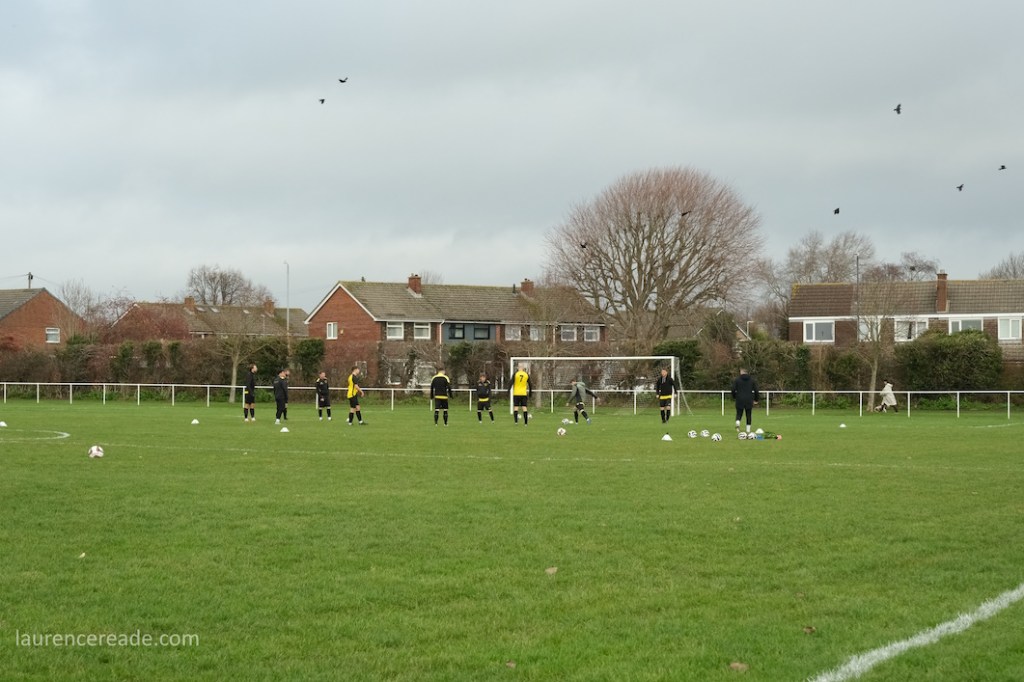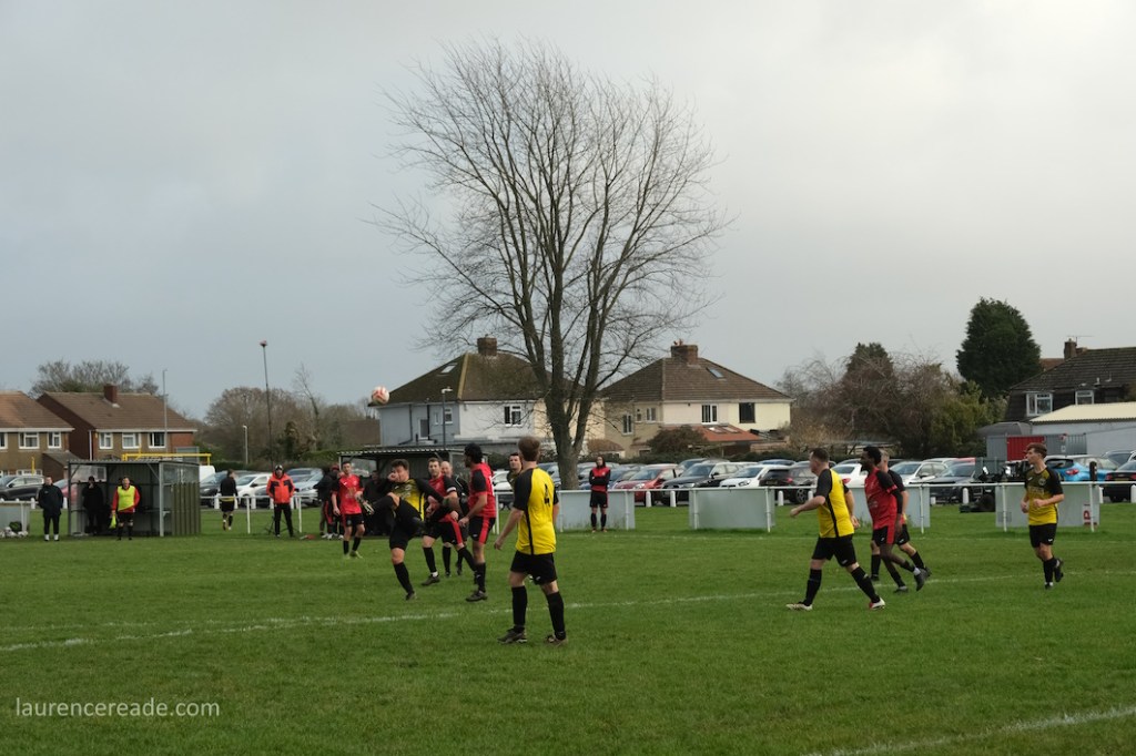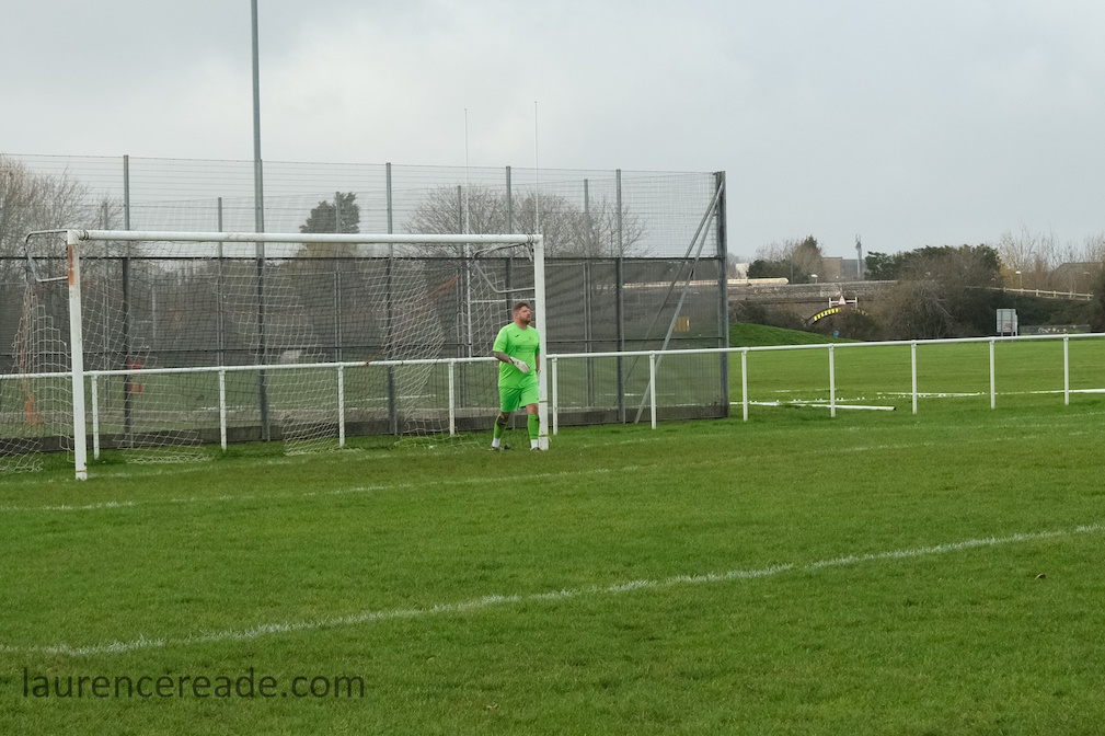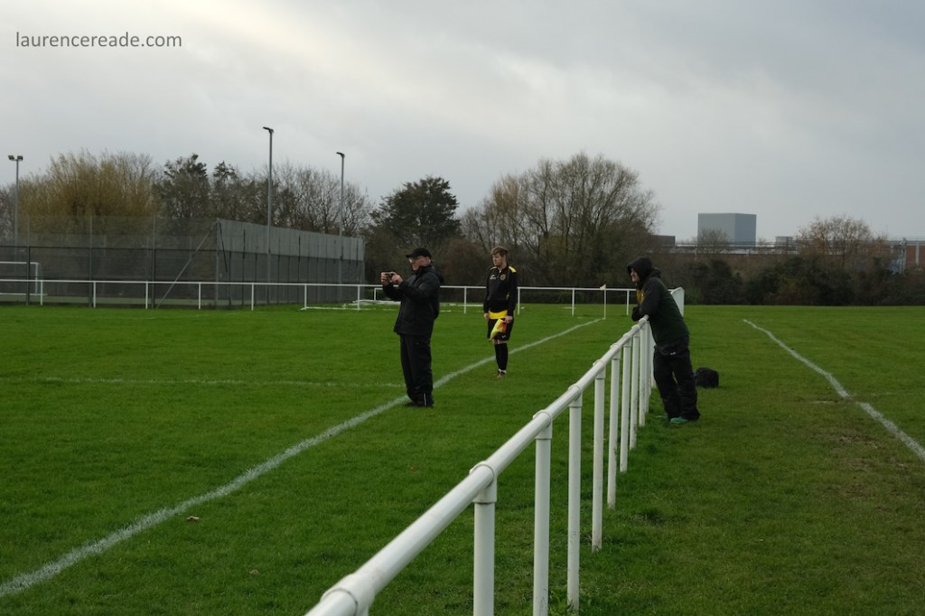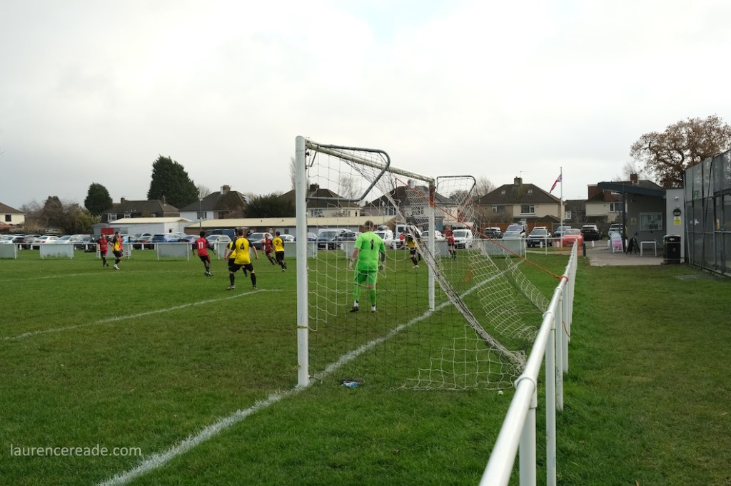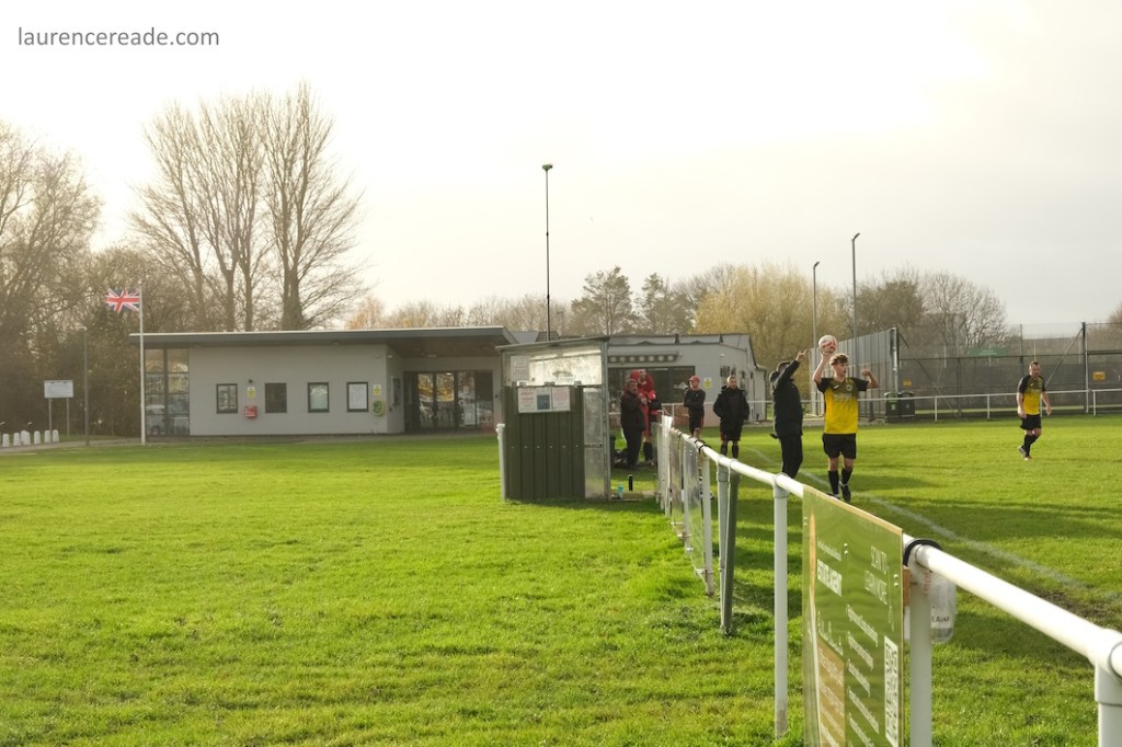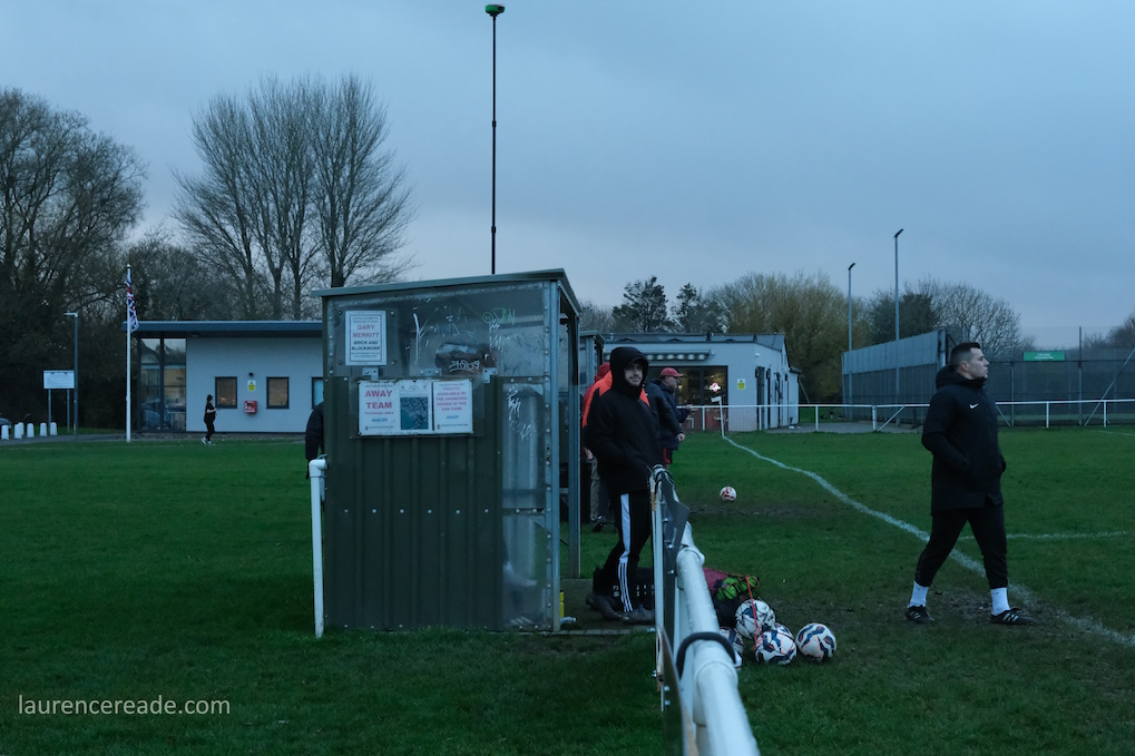 The legacy of the County League is proper dugouts and a railed off pitch but that didn’t stop me questioning my sanity when I parked up. It was bleak, the cold wind was whistling across the pitch and rainy squalls punctuated the afternoon. It was a good job the cafe was dispensing restorative hot drinks, it was borderline essential on a day like this. And yes, the attendance reflected the weather, just a bloke following the visitors, a breakaway from Mangotsfield United, the league official who runs that excellent Twitter feed, and me!
