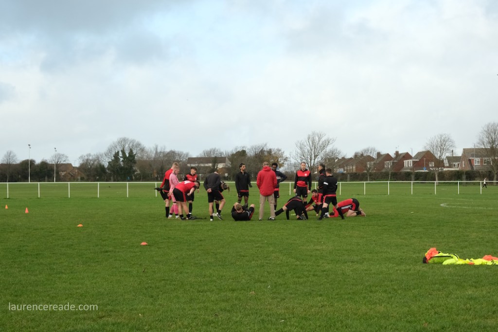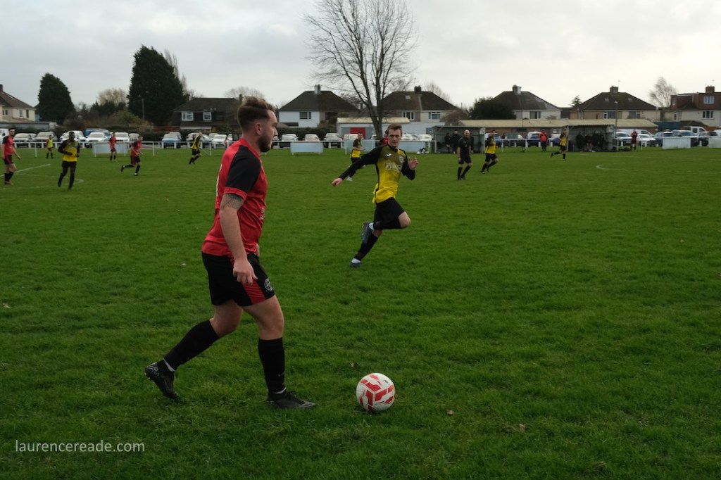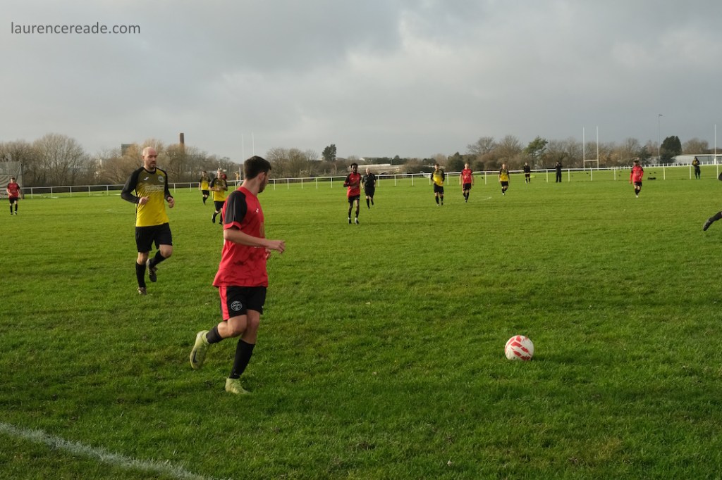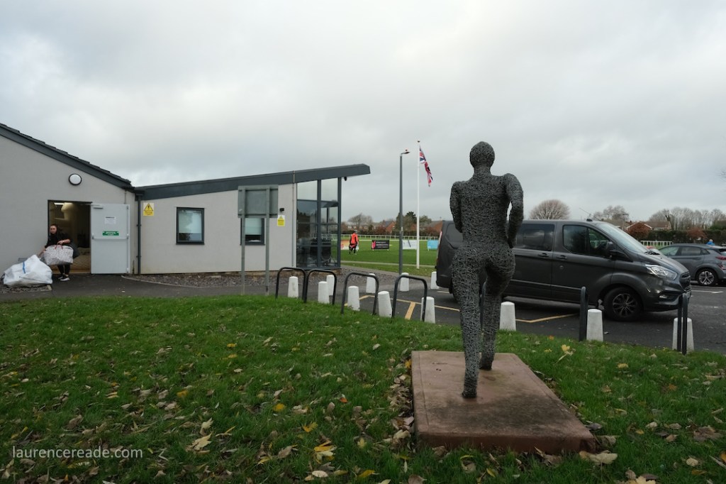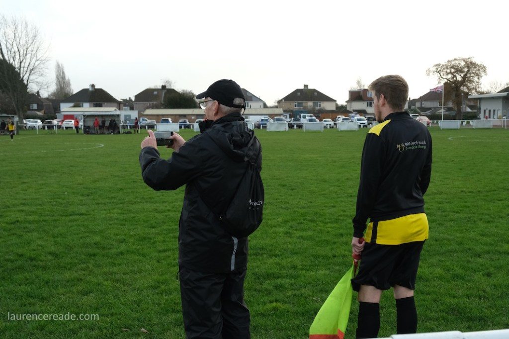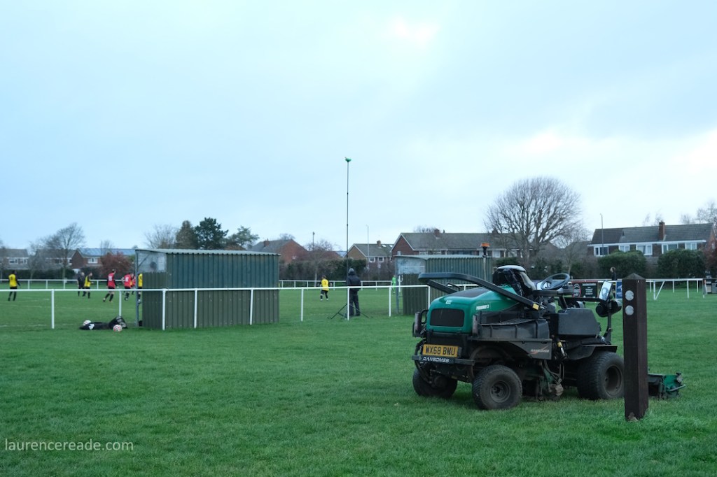 The legacy of the County League is proper dugouts and a railed off pitch but that didn’t stop me questioning my sanity when I parked up. It was bleak, the cold wind was whistling across the pitch and rainy squalls punctuated the afternoon. It was a good job the cafe was dispensing restorative hot drinks, it was borderline essential on a day like this. And yes, the attendance reflected the weather, just a bloke following the visitors, a breakaway from Mangotsfield United, the league official who runs that excellent Twitter feed, and me!