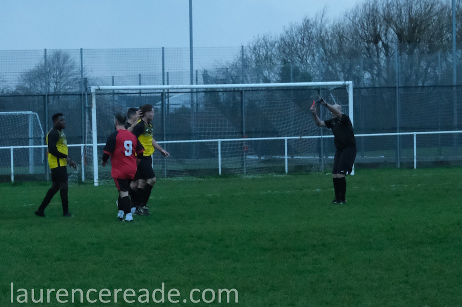 But despite the conditions the meagre crowd (if crowd is the right word) were well entertained. The visitors were just that bit sharper in front of goal than Lion were, and the fracas that produced the late red card was more heat than light. If only that last phrase hadn’t been rhetorical!