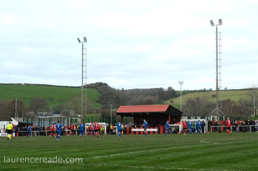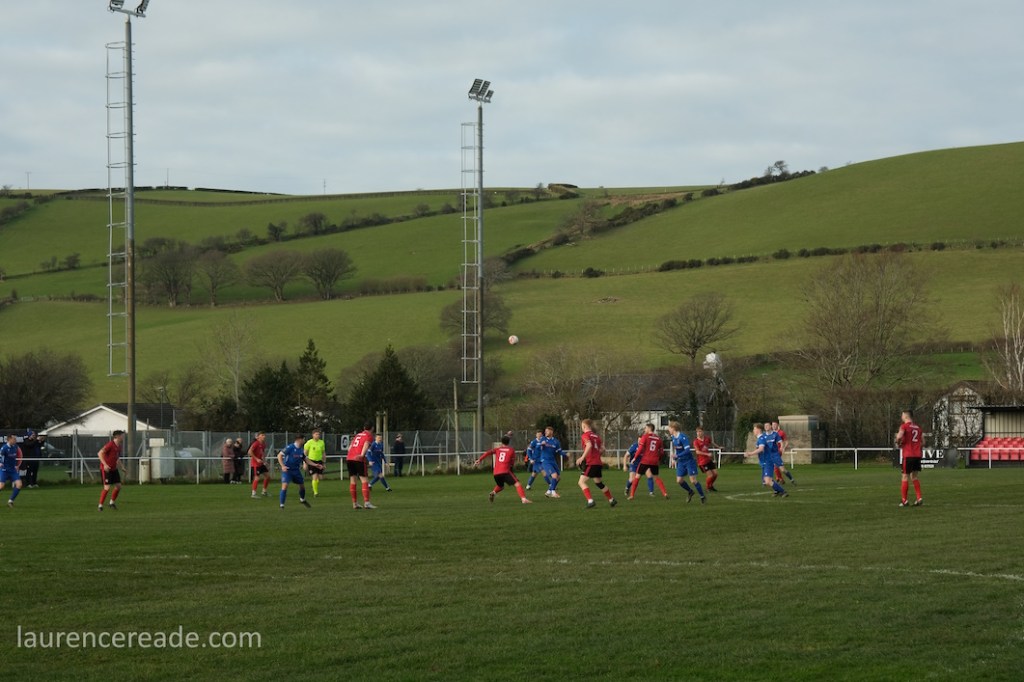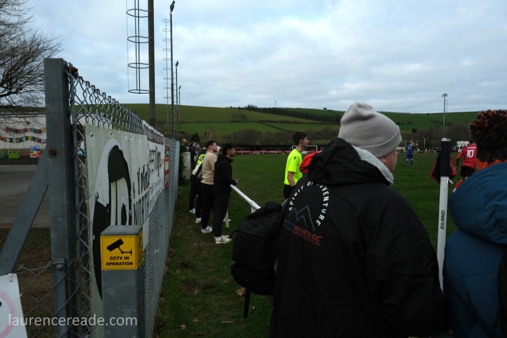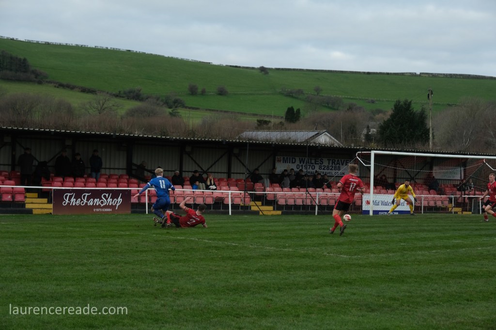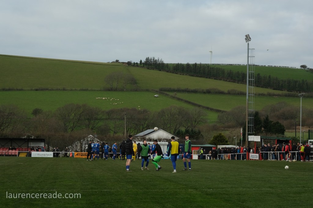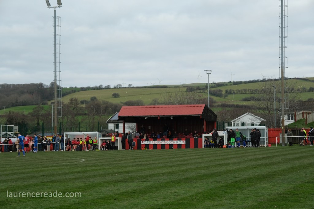 The Roosters have been around since 1965 and have always played at Cae Baker with the club gaining a lease from Ceredigion County Council in 1975. The ground is named after John Baker, an 18th-century farmer who previously farmed the land. Even now the ground sits with agriculture as its backdrop. I did note that the shepherd, with his dog, and Land Rover, didn’t pause to watch the football, while coralling the sheep!