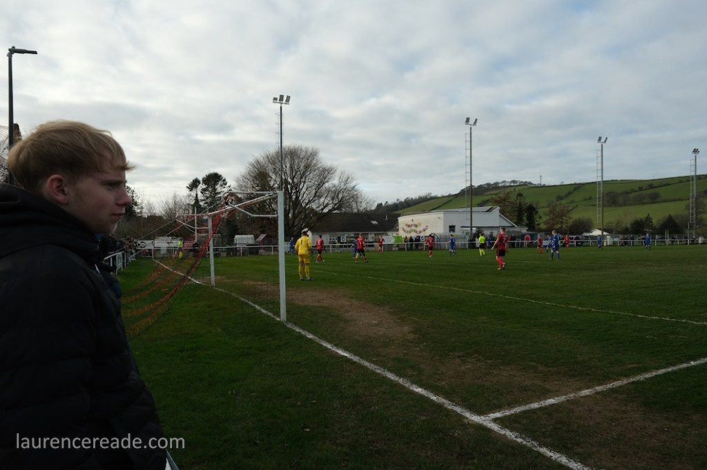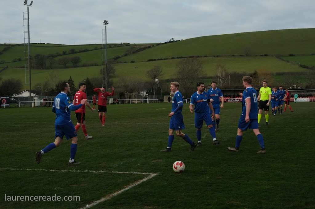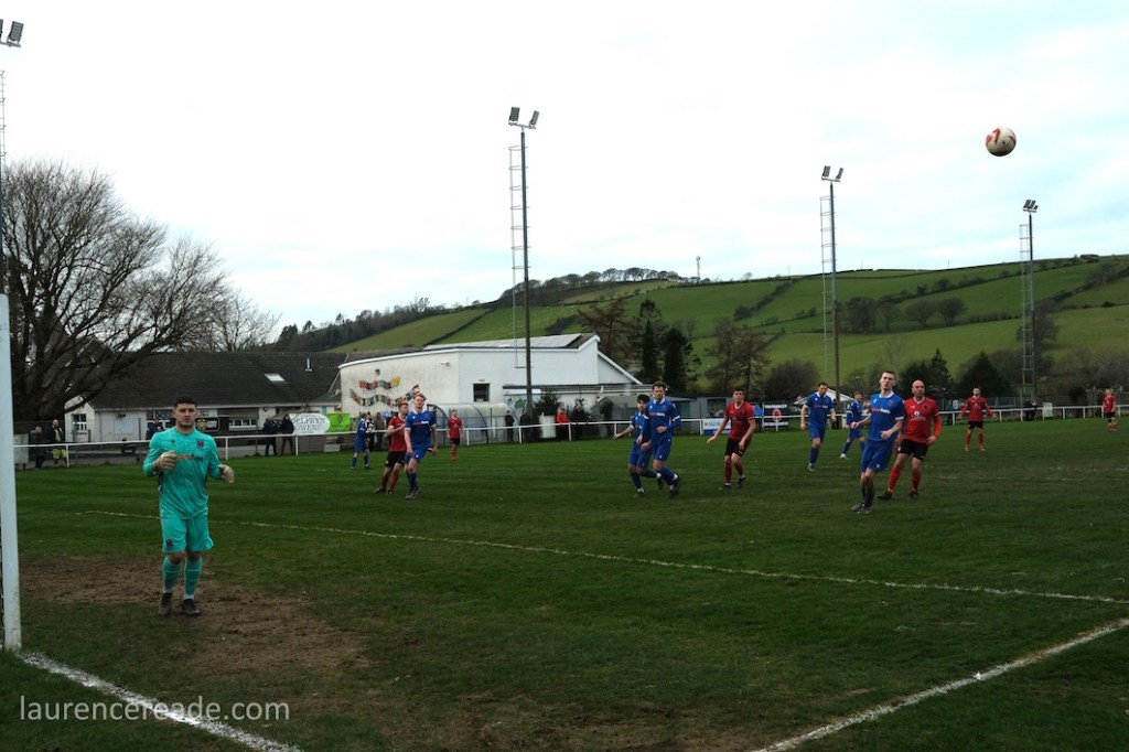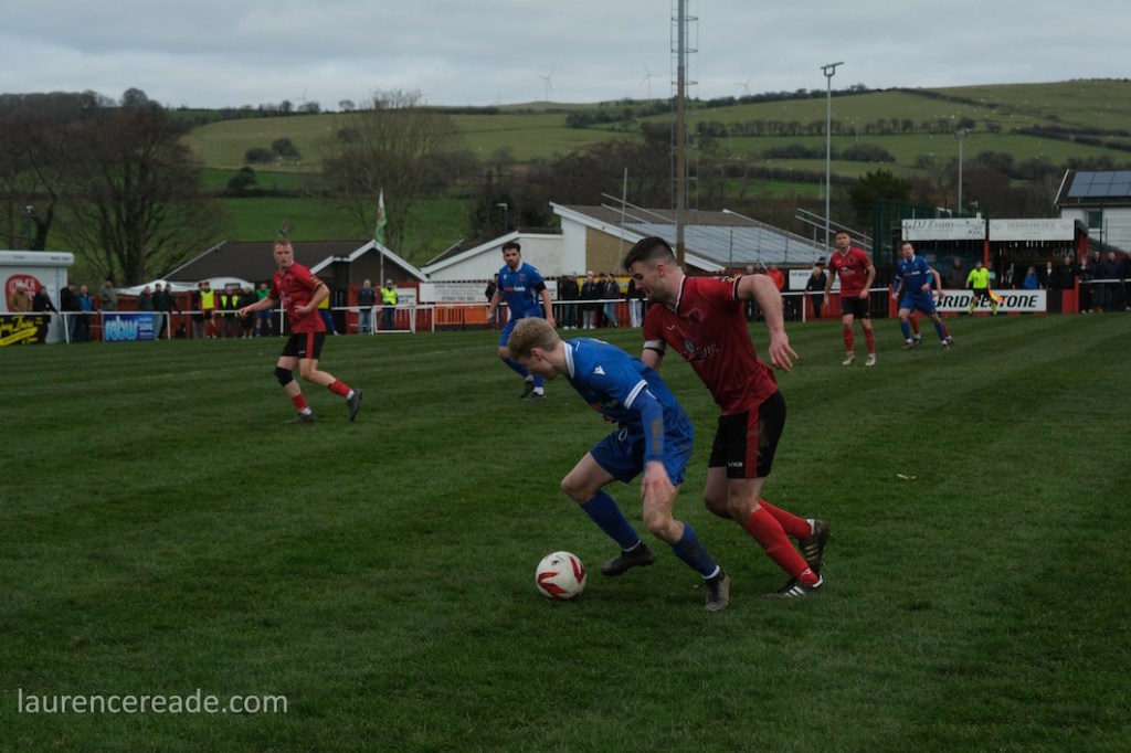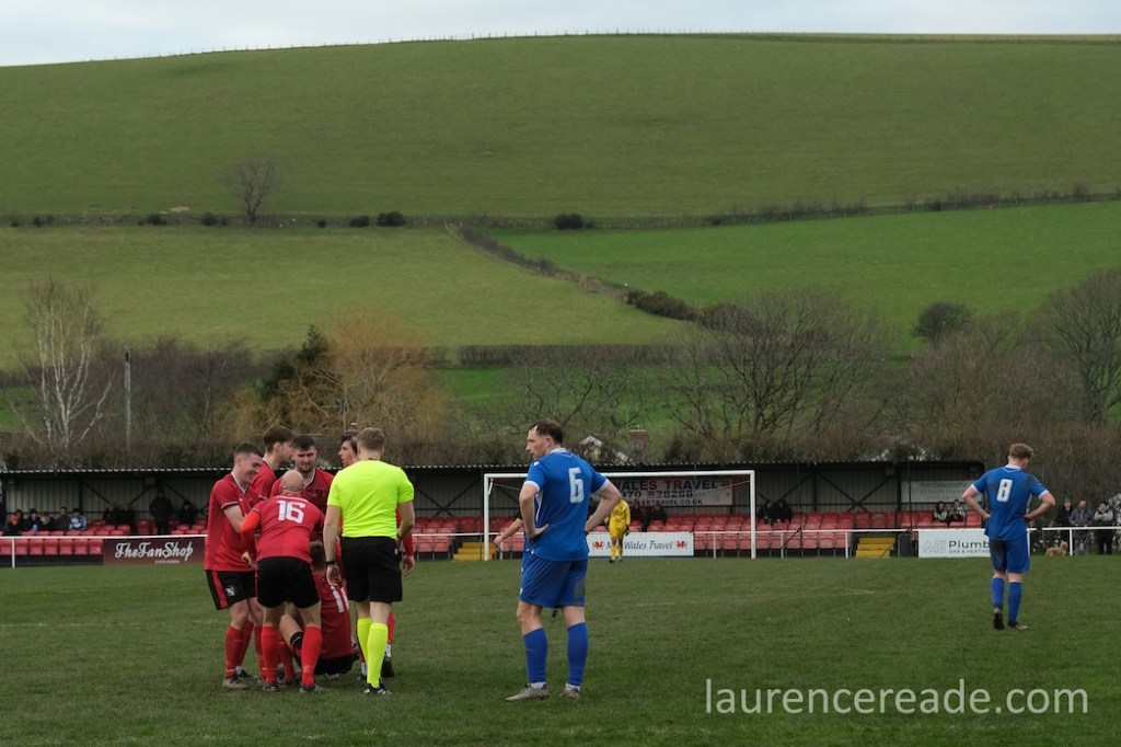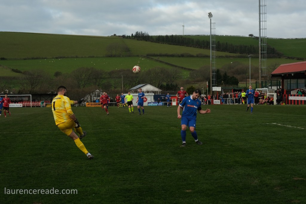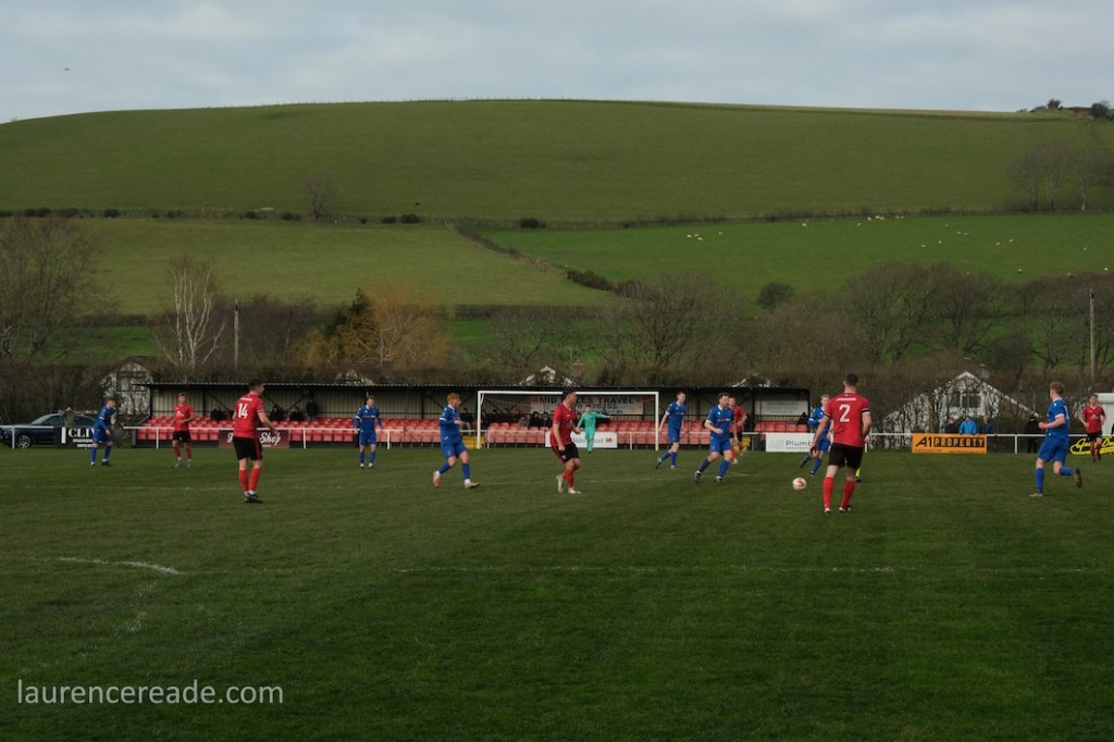 The Roosters have been around since 1965 and have always played at Cae Baker with the club gaining a lease from Ceredigion County Council in 1975. The ground is named after John Baker, an 18th-century farmer who previously farmed the land. Even now the ground sits with agriculture as its backdrop. I did note that the shepherd, with his dog, and Land Rover, didn’t pause to watch the football, while coralling the sheep!