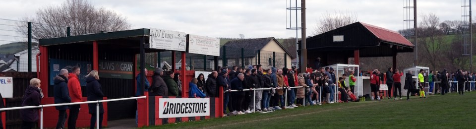 The Roosters have been around since 1965 and have always played at Cae Baker with the club gaining a lease from Ceredigion County Council in 1975. The ground is named after John Baker, an 18th-century farmer who previously farmed the land. Even now the ground sits with agriculture as its backdrop. I did note that the shepherd, with his dog, and Land Rover, didn’t pause to watch the football, while coralling the sheep!