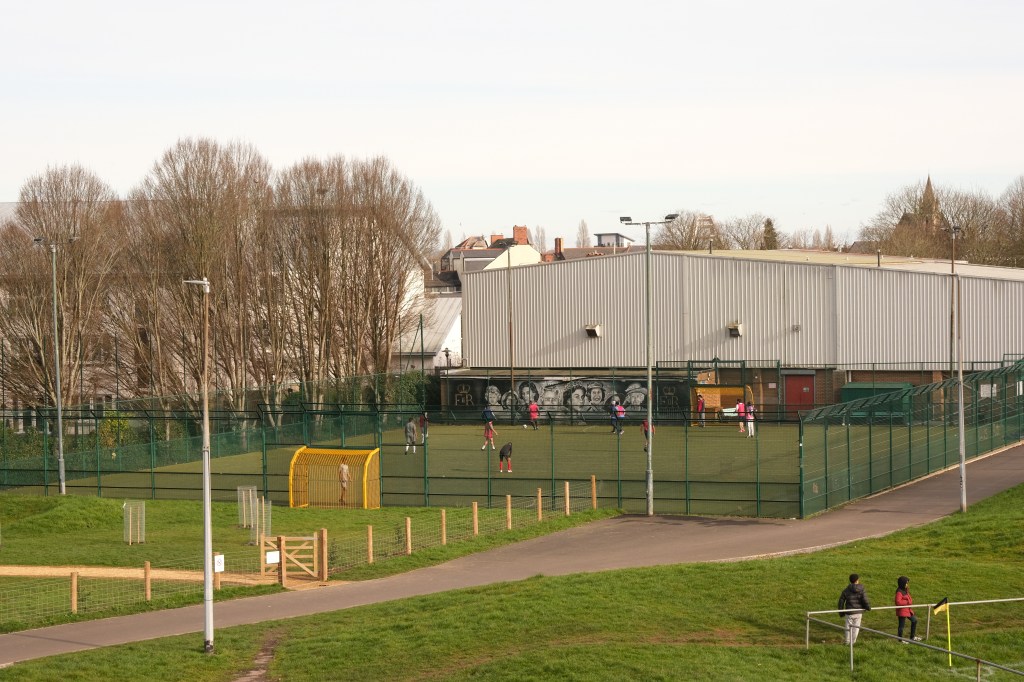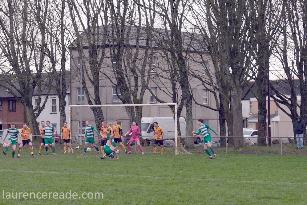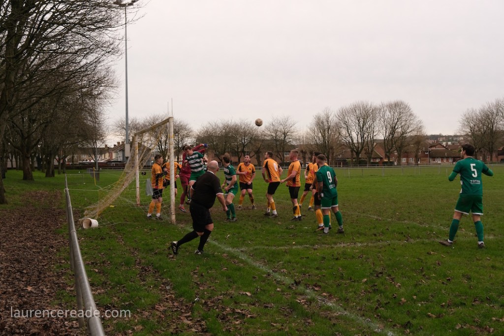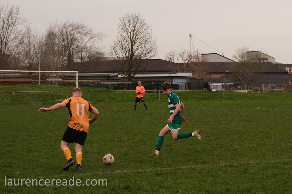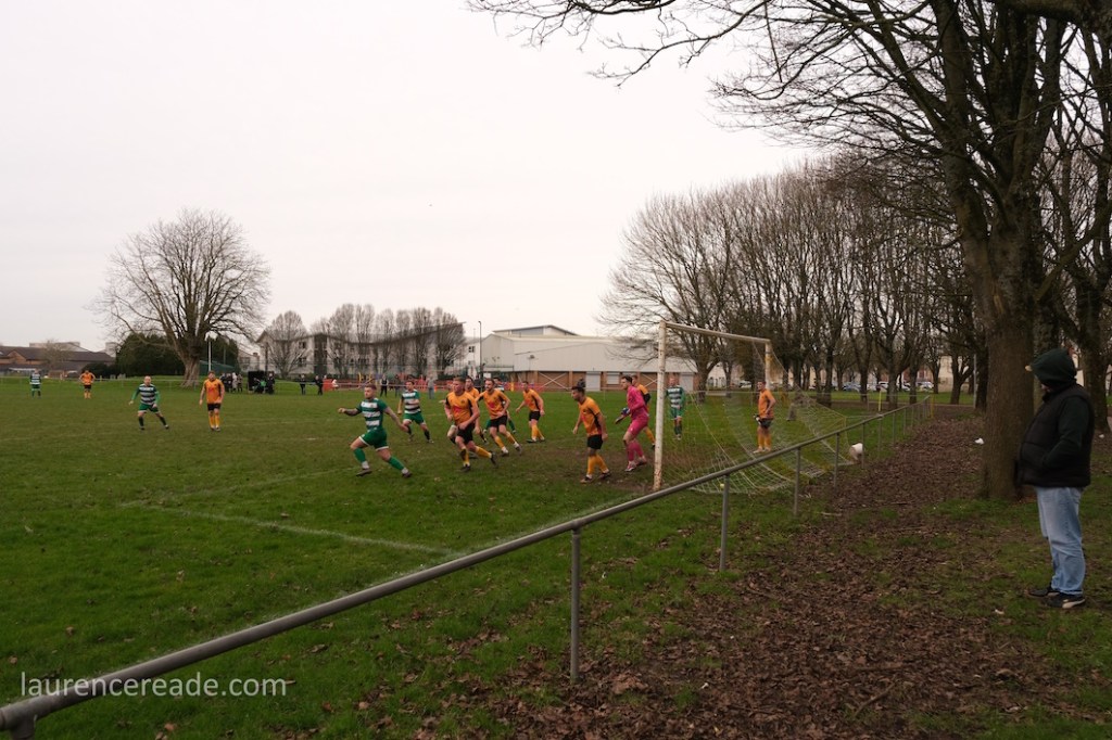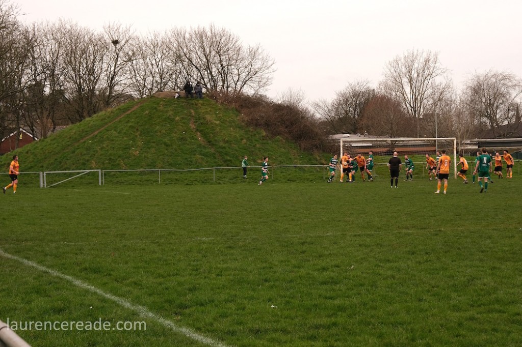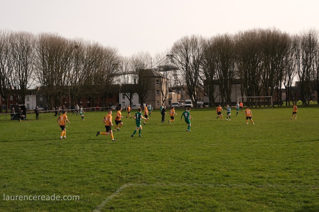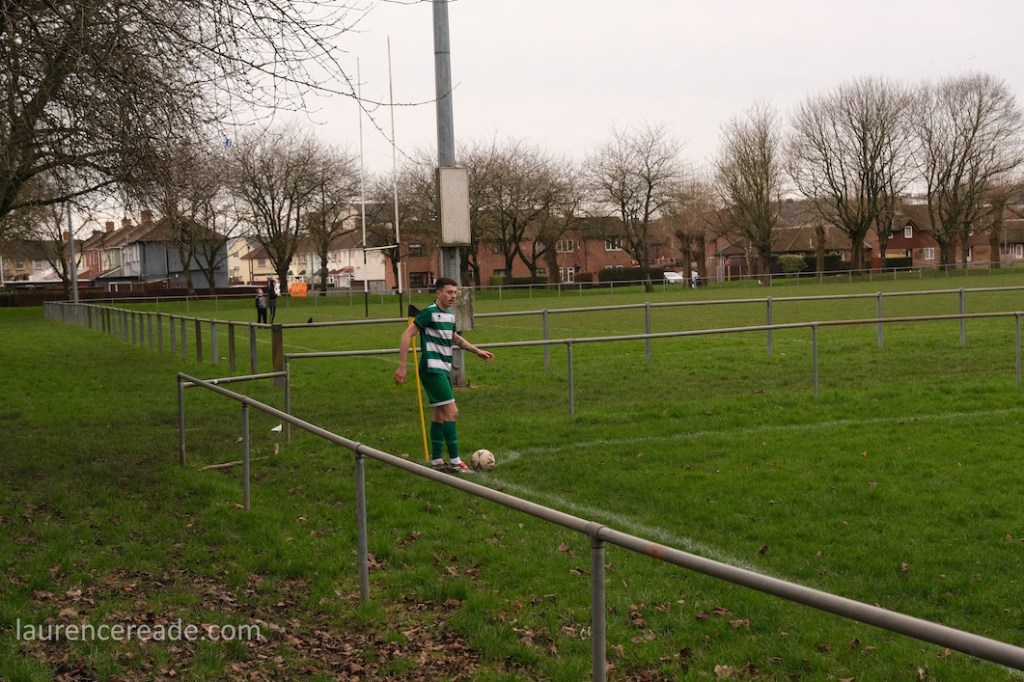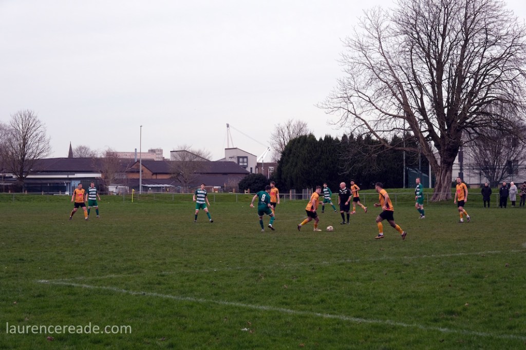 Pill returned to a facility for both football and rugby and just over the street the 2nd XI played a fixture that I’d have been tempted by had the game times not overlapped. What makes the firsts’ pitch interesting is the man-made hillock behind the near goal. By the looks of it, it was built as some sort of drainage access, but there is a path up to the top, and the view from the top is superb, and if you want to get the transporter bridge in your photos that’s where you head. I could have watched the entire game from there!