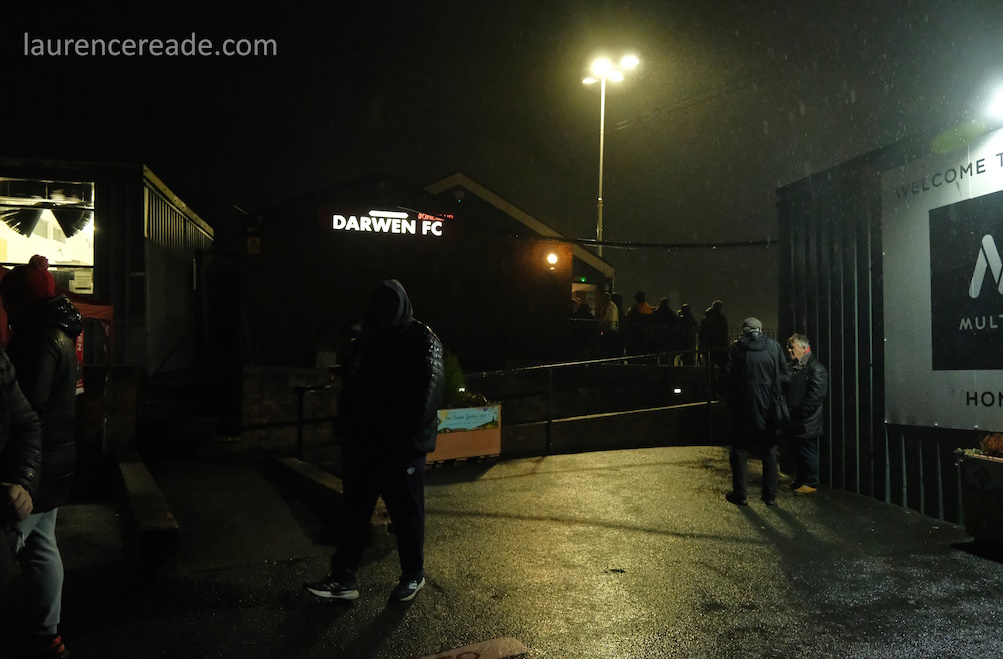So back on GroundhopUK duty, but the 4 of us have been doing it so long we just slip into our roles without any great effort, and that also goes for the North West Counties League too. That for us adds up mainly as Martin Fallon, who seems to become a groundhopper for the weekend! Robyn and I were particularly looking forward to visiting Darwen, with their background of Football League membership, but the evening was to straddle comedy and the bleakest of tragedy in the space of minutes.