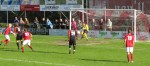 It was in the 10th minute when the whole complexion of the game, and the 4 neutrals there’s evening changed. A Park forward was clean through and was taken out by goalkeeper Stuart Gosby. For me it was out of the box but a penalty was awarded by referee David Jewell , but Gosby was extremely fortunate to stay on the pitch as it looked to be a clear goalscoring opportunity. Whatever the facts of the matter, Chowhary was booked for dissent, before Ahmet Tungy tucked away the penalty.
